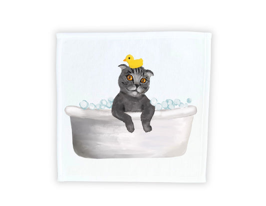 Playful Bathing Cat Washcloth – Whimsical Feline Art