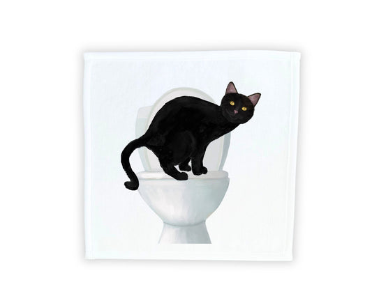 Curious Black Cat Toilet Washcloth – Quirky and Fun Gift