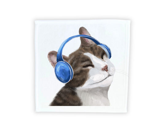 Music-Loving Cat Washcloth – A Perfect Gift for Cat and Music Lovers