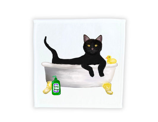 Playful Black Cat Bubble Bath Washcloth – Adorable Gift for Cat Lovers