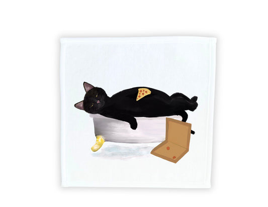 Relaxed Black Cat Pizza Washcloth – Fun Gift for Cat and Pizza Lovers