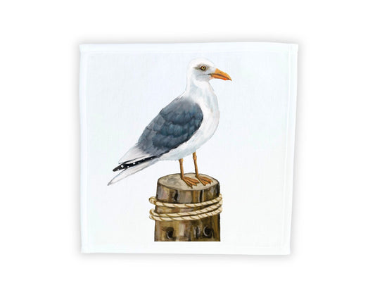 Herring Gull on Dock Post Washcloth