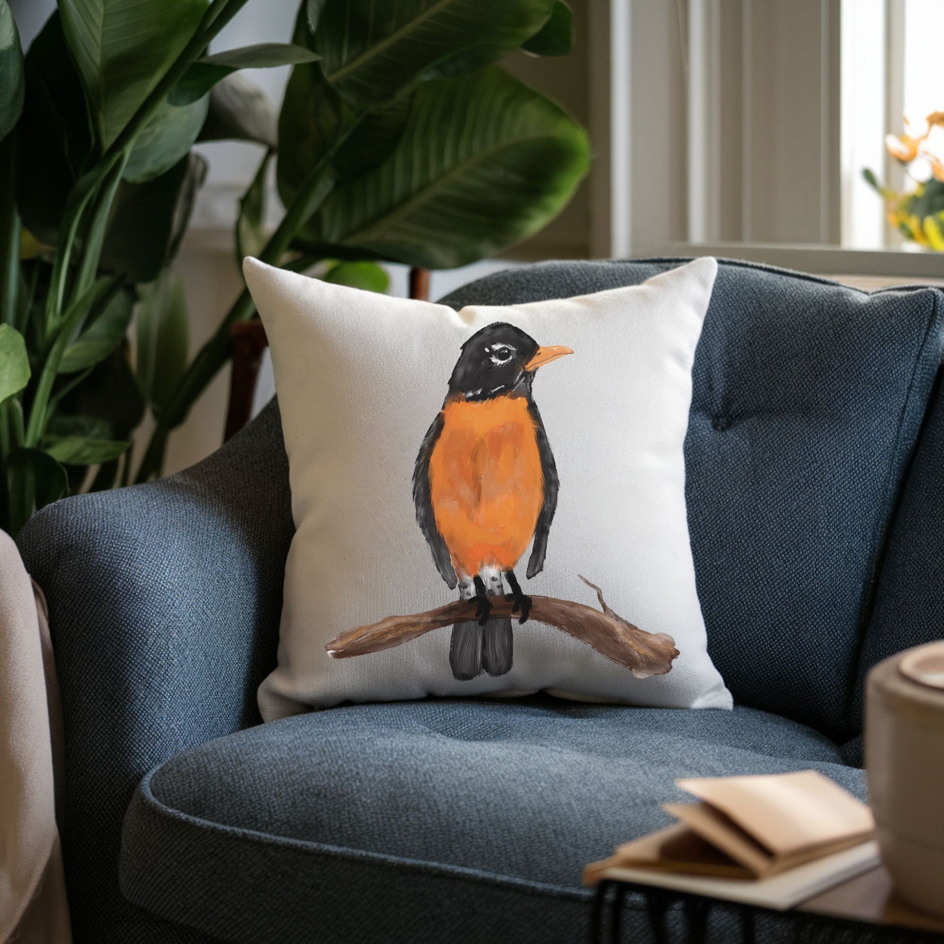 Bring the beauty of nature into your home with this stunning American Robin Pillow, featuring a lifelike illustration by Harika Altungun. This unique design captures the warmth and charm of this iconic backyard bird, making it a perfect addition to any bird lover’s decor.