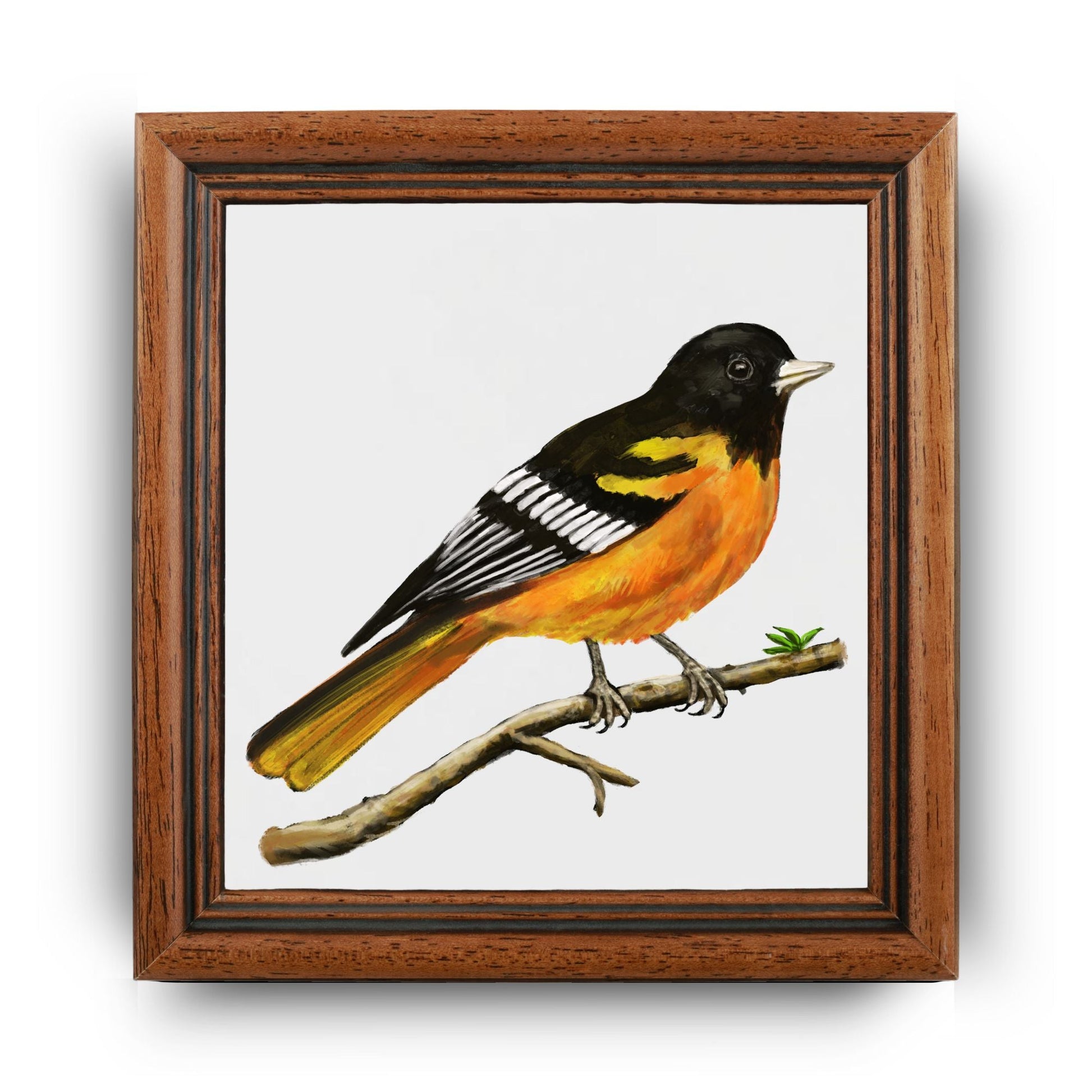 Celebrate the vibrant beauty of the Baltimore Oriole with this exquisite ceramic tile, featuring artwork by Harika Altungun. This unique piece showcases the striking orange and black plumage of this beloved songbird, making it a perfect decorative accent for bird lovers and nature enthusiasts. Display it as wall art or use it to enhance your bird-inspired decor.