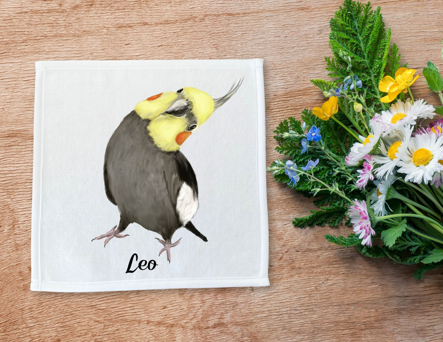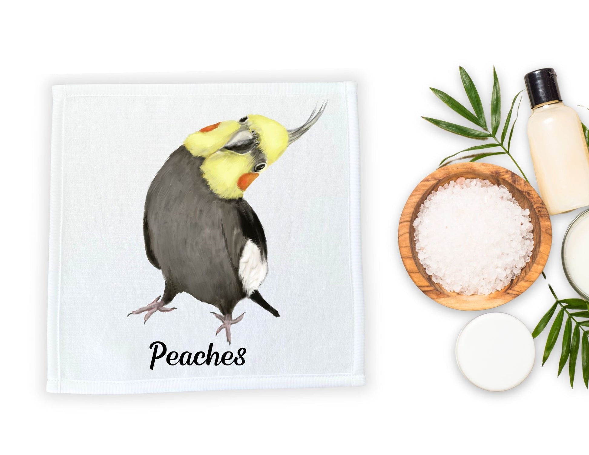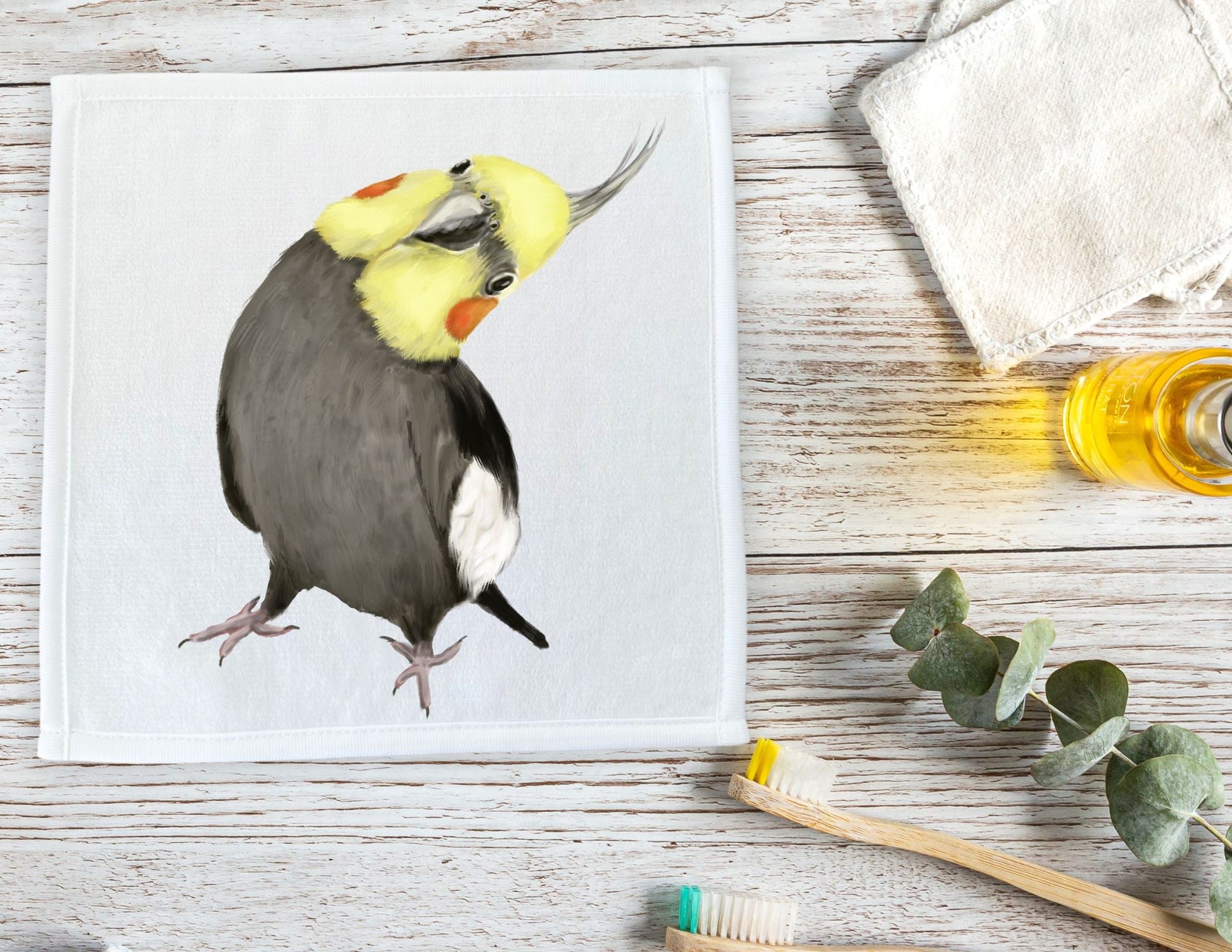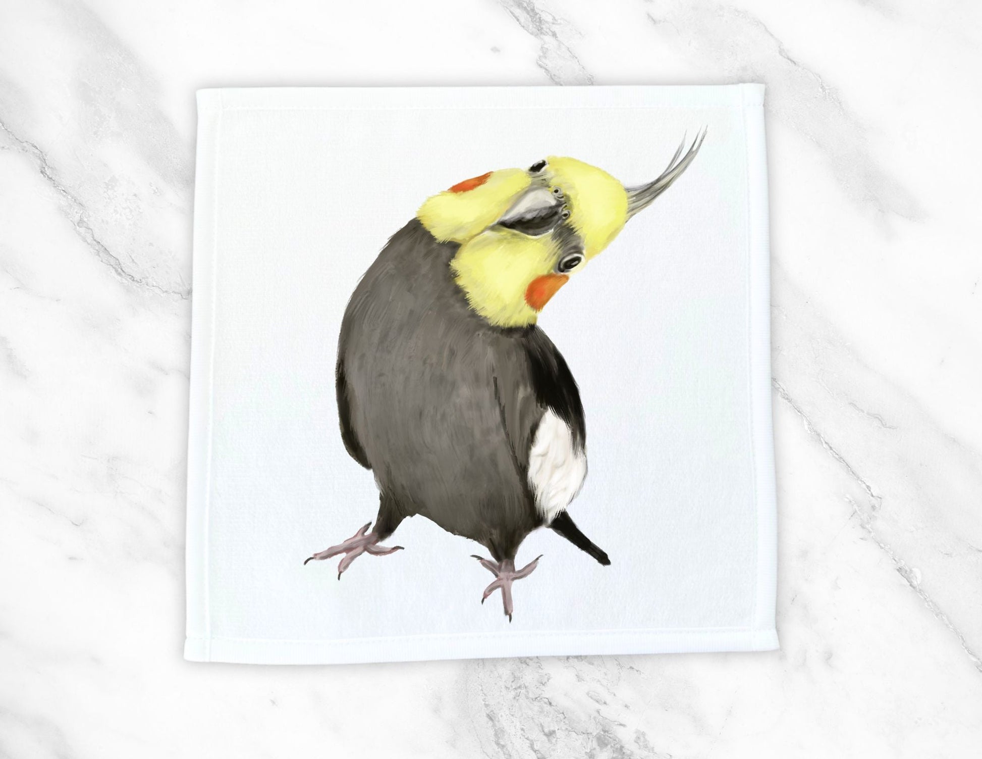 Brighten up your space with the Cockatiel Charm Washcloth! Featuring a charming illustration of a curious cockatiel with vibrant yellow, orange, and gray tones, this washcloth adds a delightful bird-themed accent to your home. Perfect for bird lovers, this washcloth blends functionality with adorable artistry.