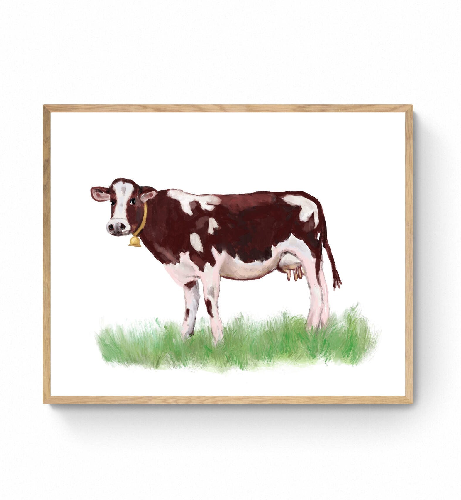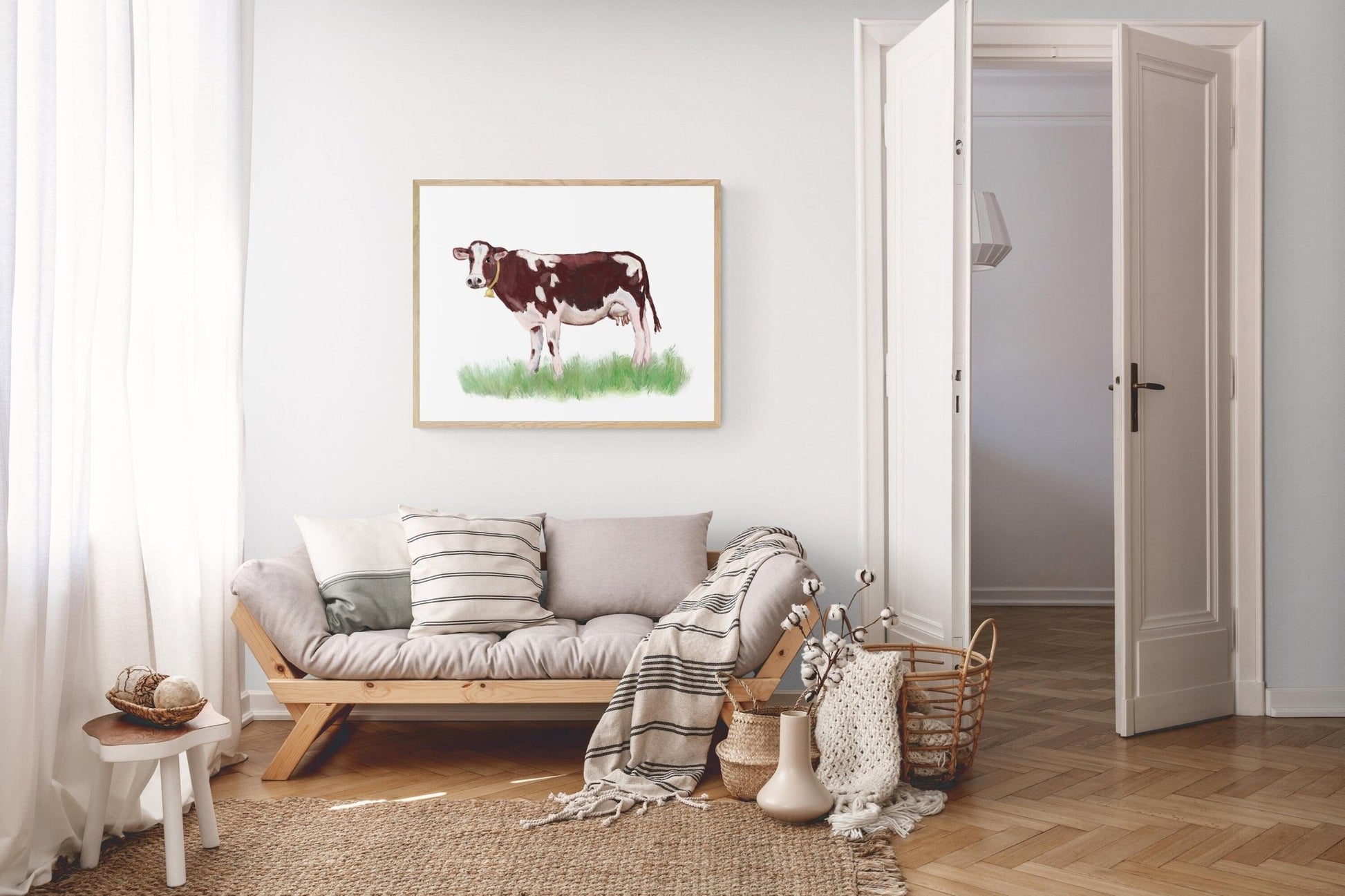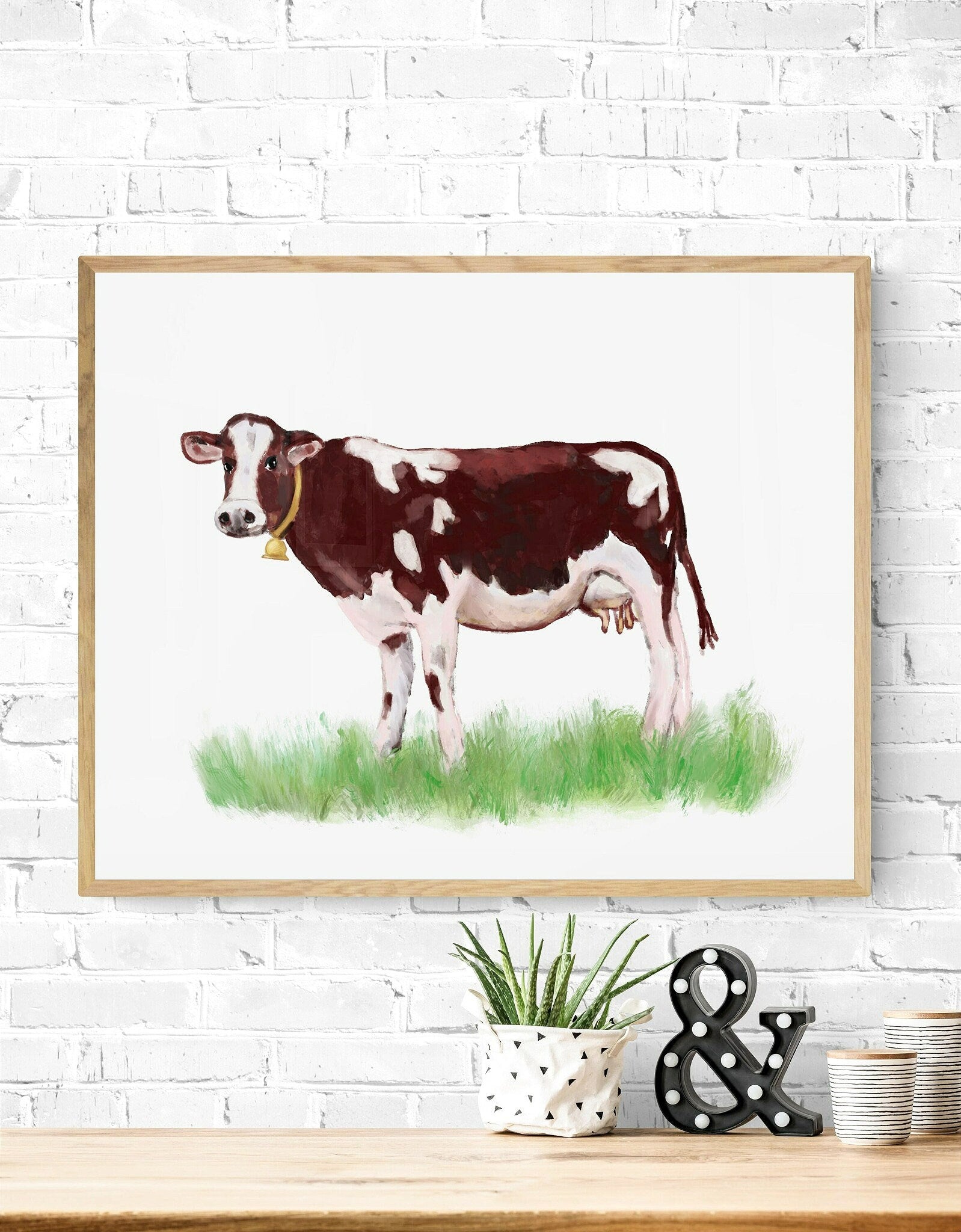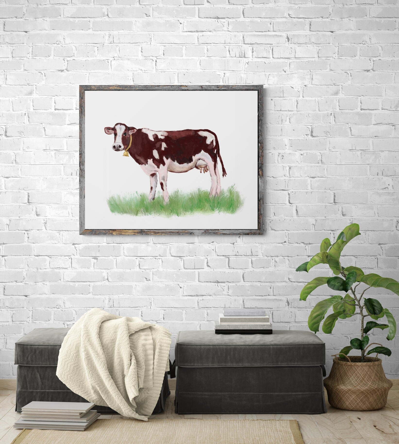 Cow Print, Brown Cow Painting, Animal Art, Living Room Wall Art, Home Decor, Farm Animals Illustration, Animal Lover, Farmhouse Decor