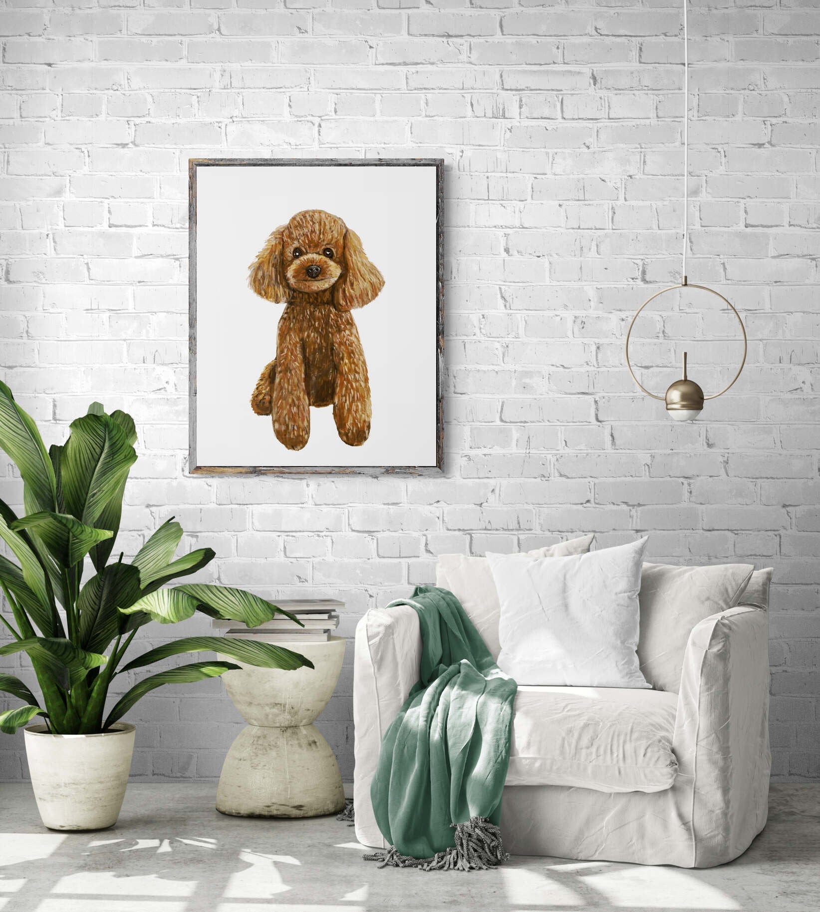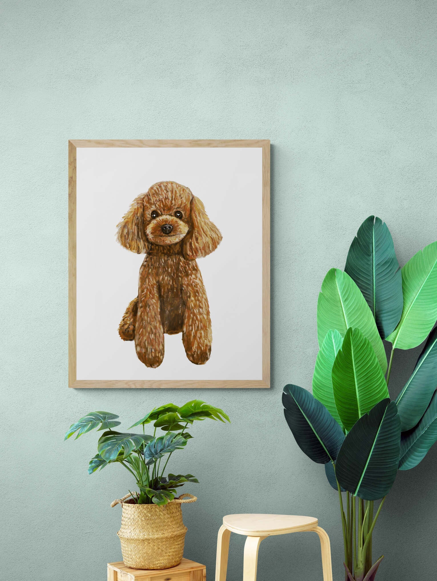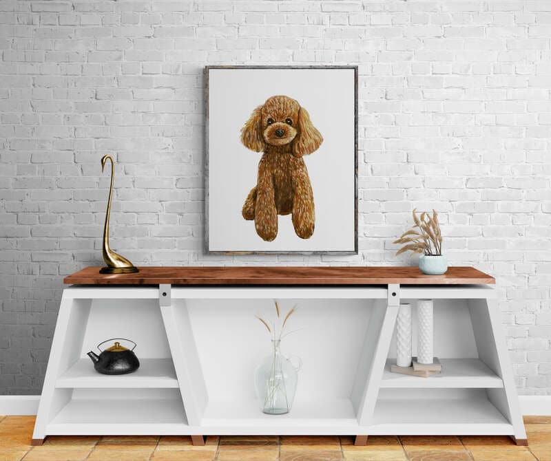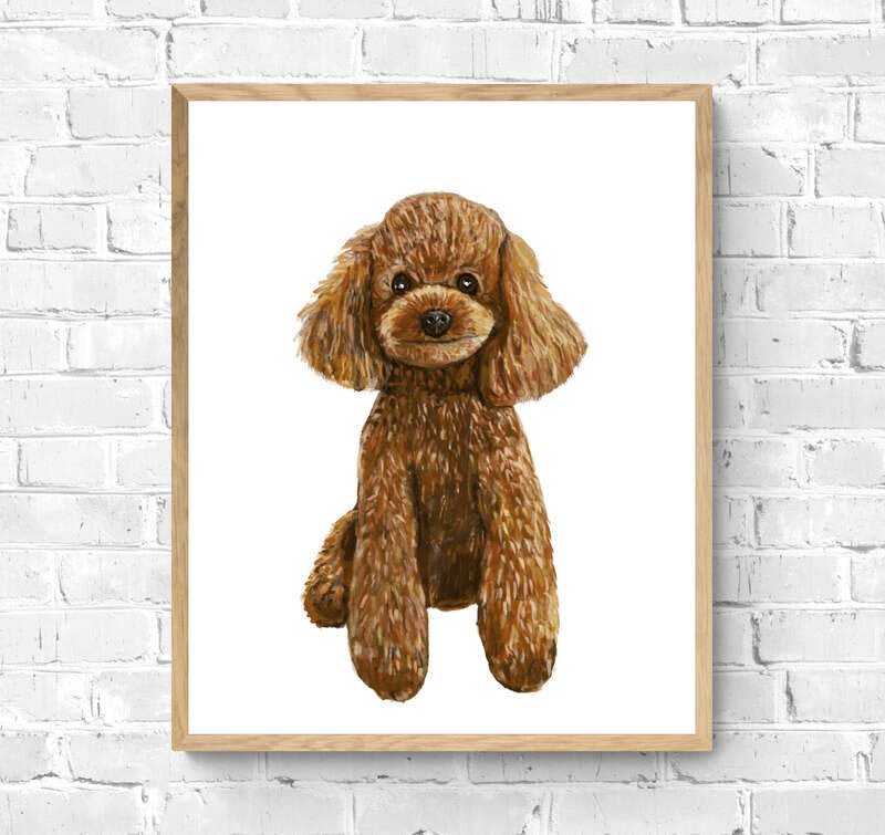 Cute Poodle Print, Poodle Portrait, Doggy Artwork, Brown Poodle Painting, Living Room Wall Art, Bedroom Wall Print, Puppy Home Decor