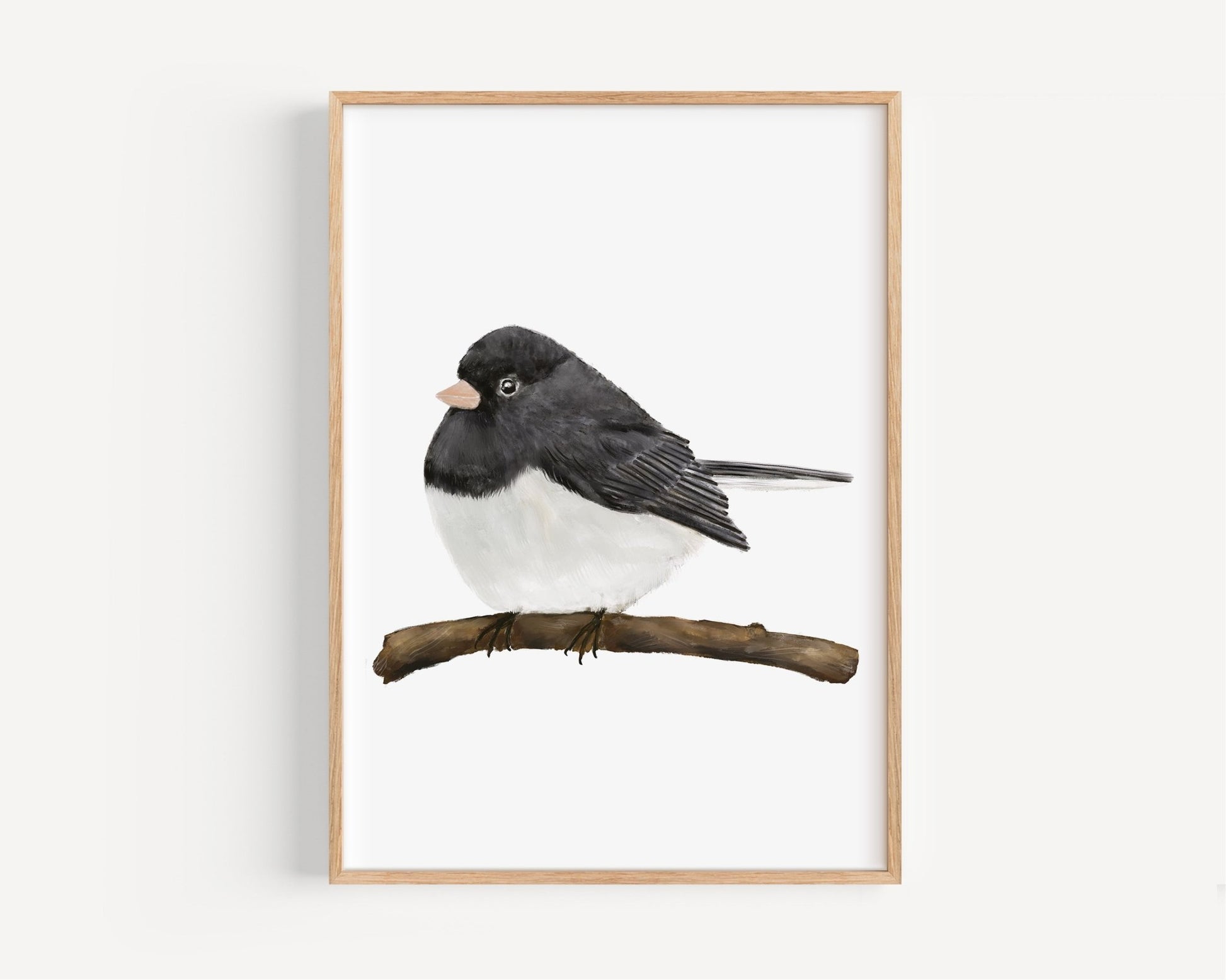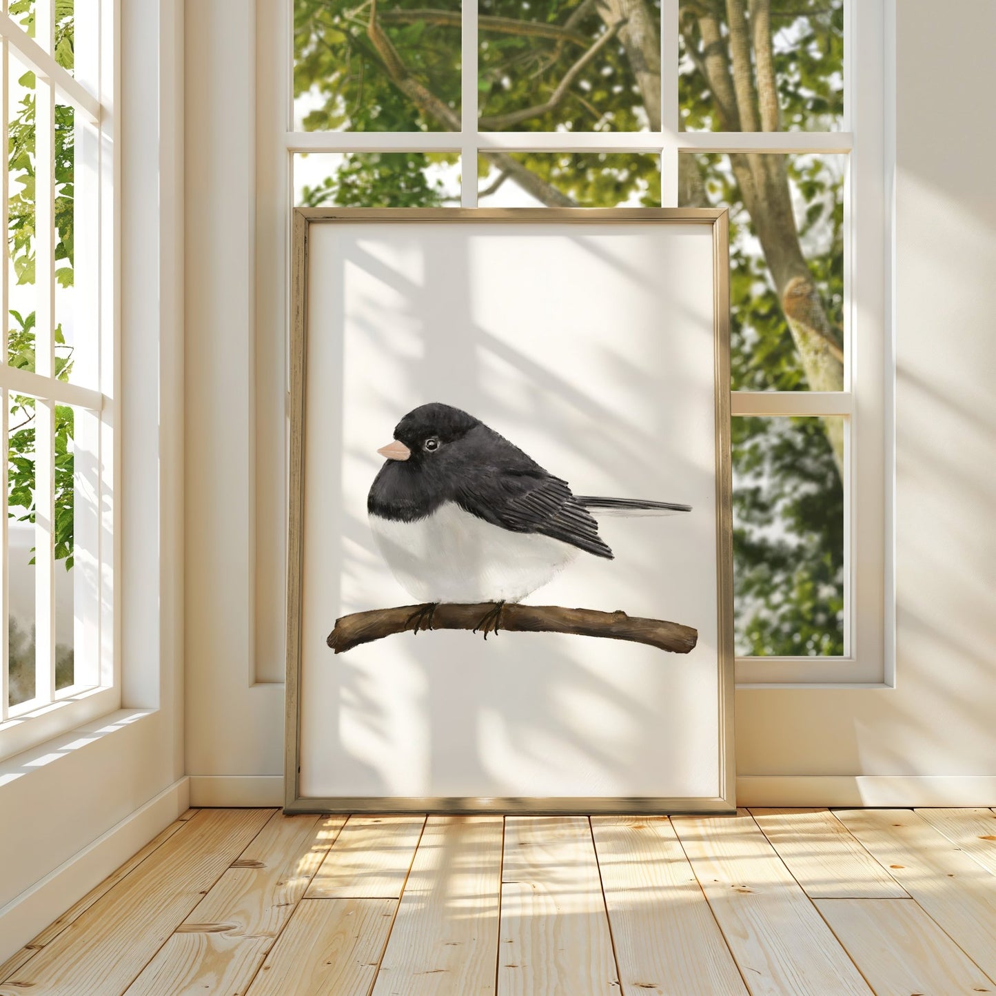 Dark-eyed Junco Wall Art Print – Black and White Songbird Illustration for Nature Lovers
