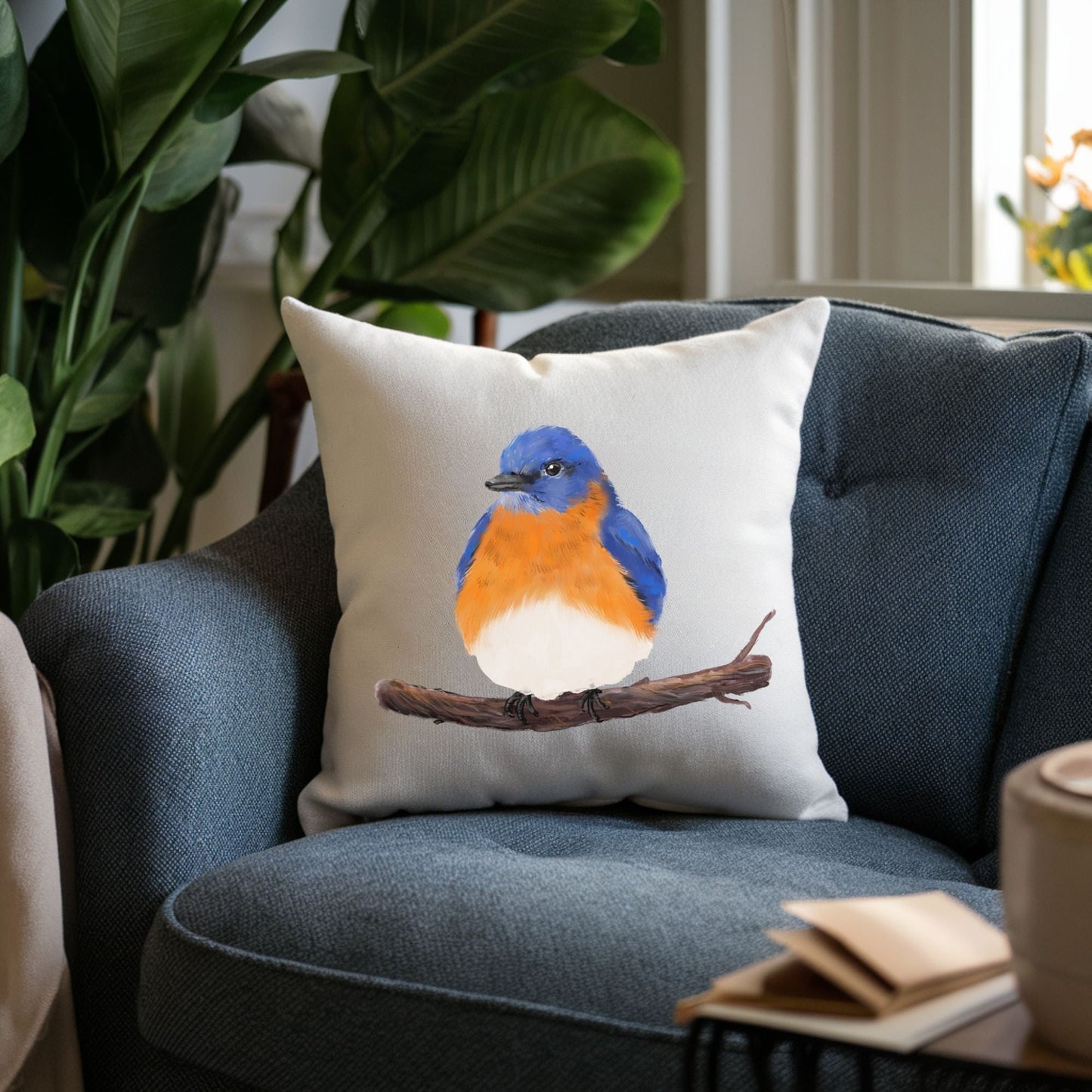 Add a touch of nature to your home with this beautifully illustrated Eastern Bluebird Pillow, designed by Harika Altungun. The vibrant blue and orange hues of this beloved backyard bird make it a perfect accent for bird lovers and nature enthusiasts.