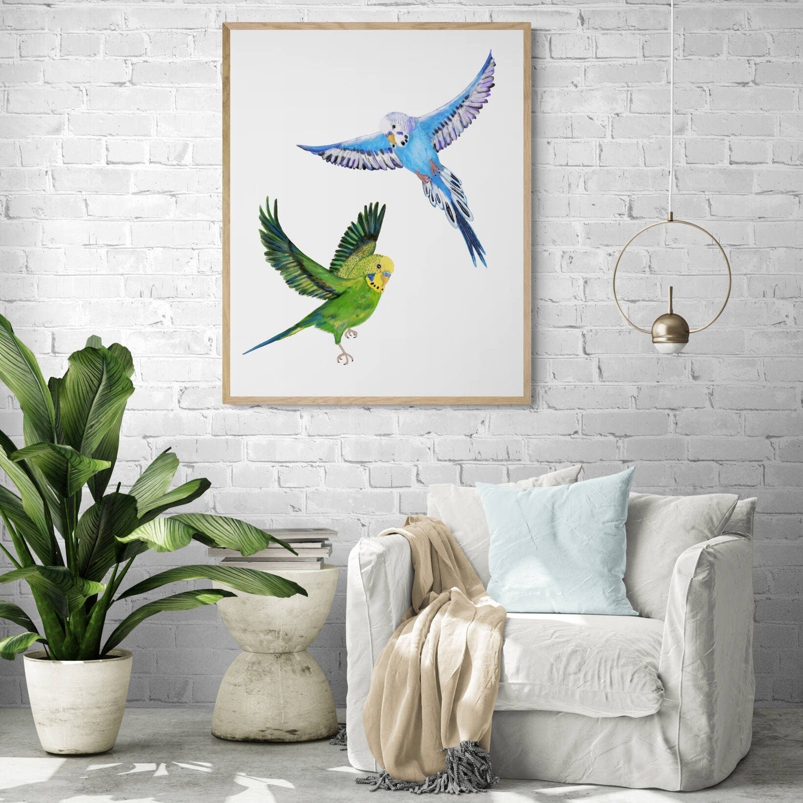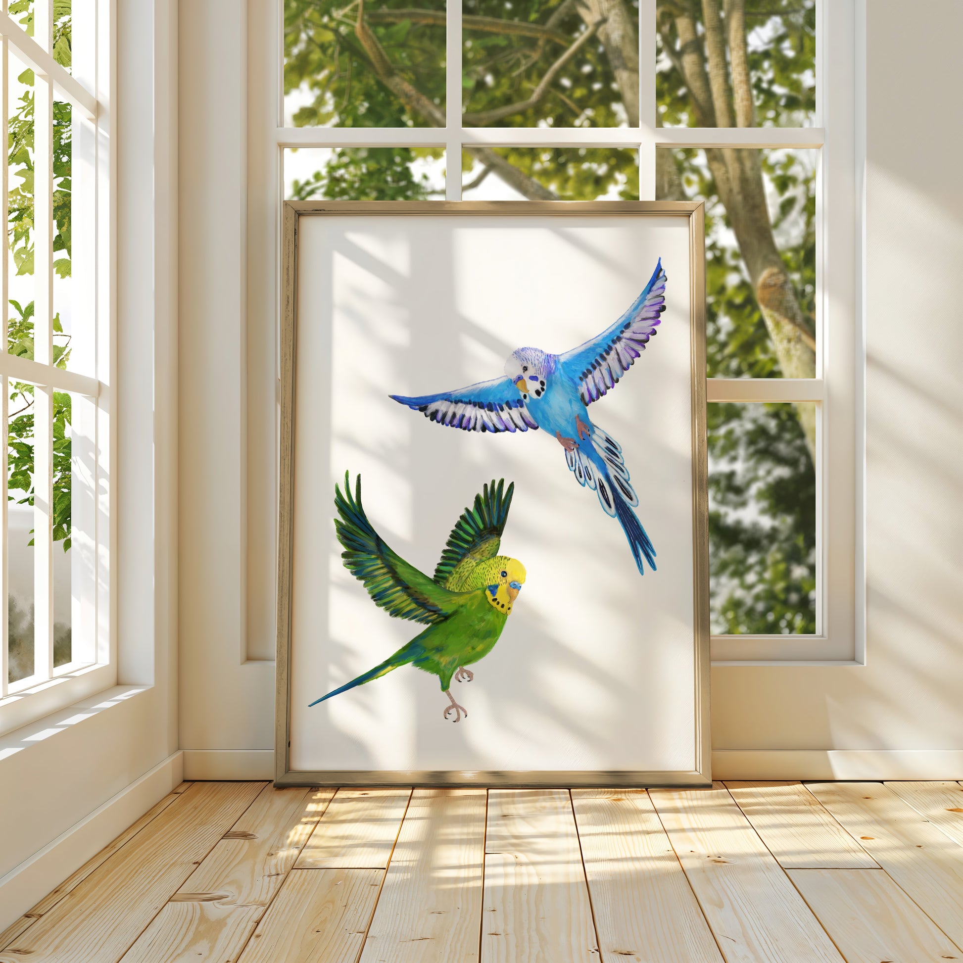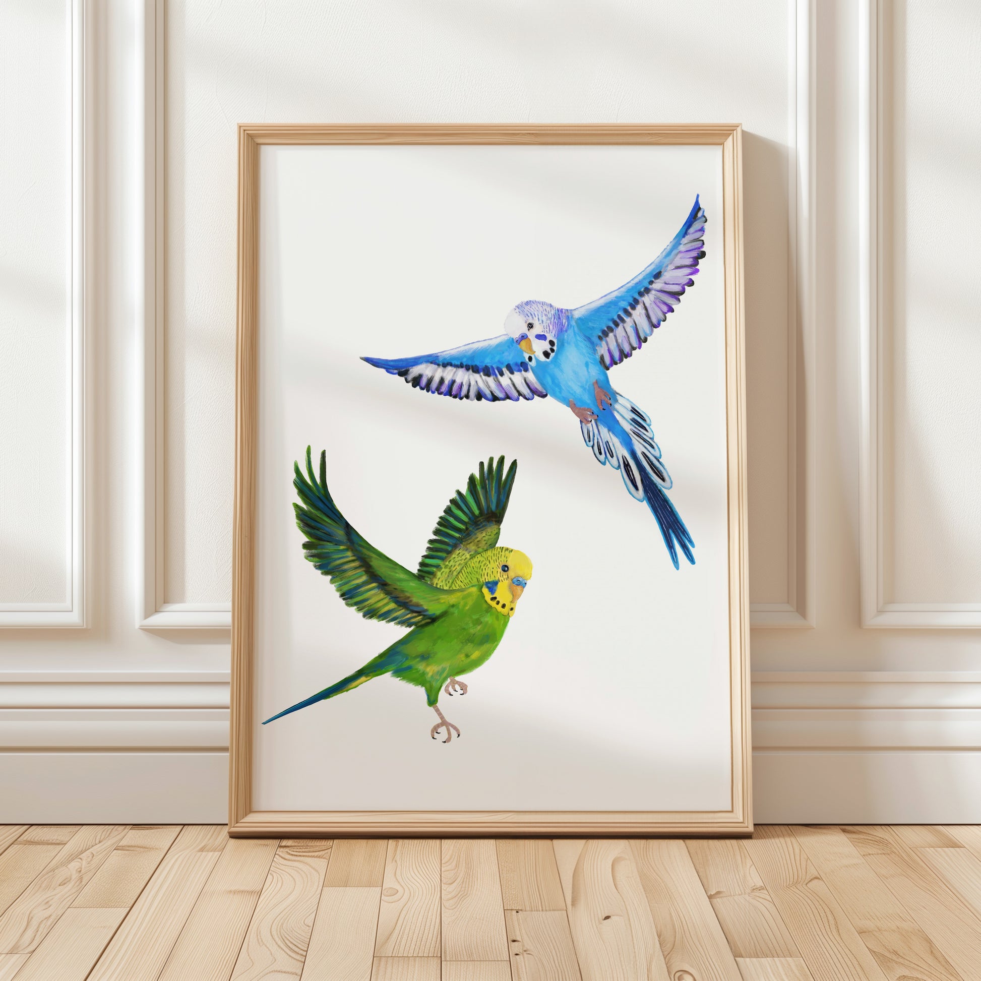 Perfect Gift For: An ideal gift for budgie owners, parakeet enthusiasts, and anyone who loves birds and colorful decor. This print is perfect for adding a touch of joy and movement to a home, making it a wonderful choice for nature-inspired or pet-themed spaces.