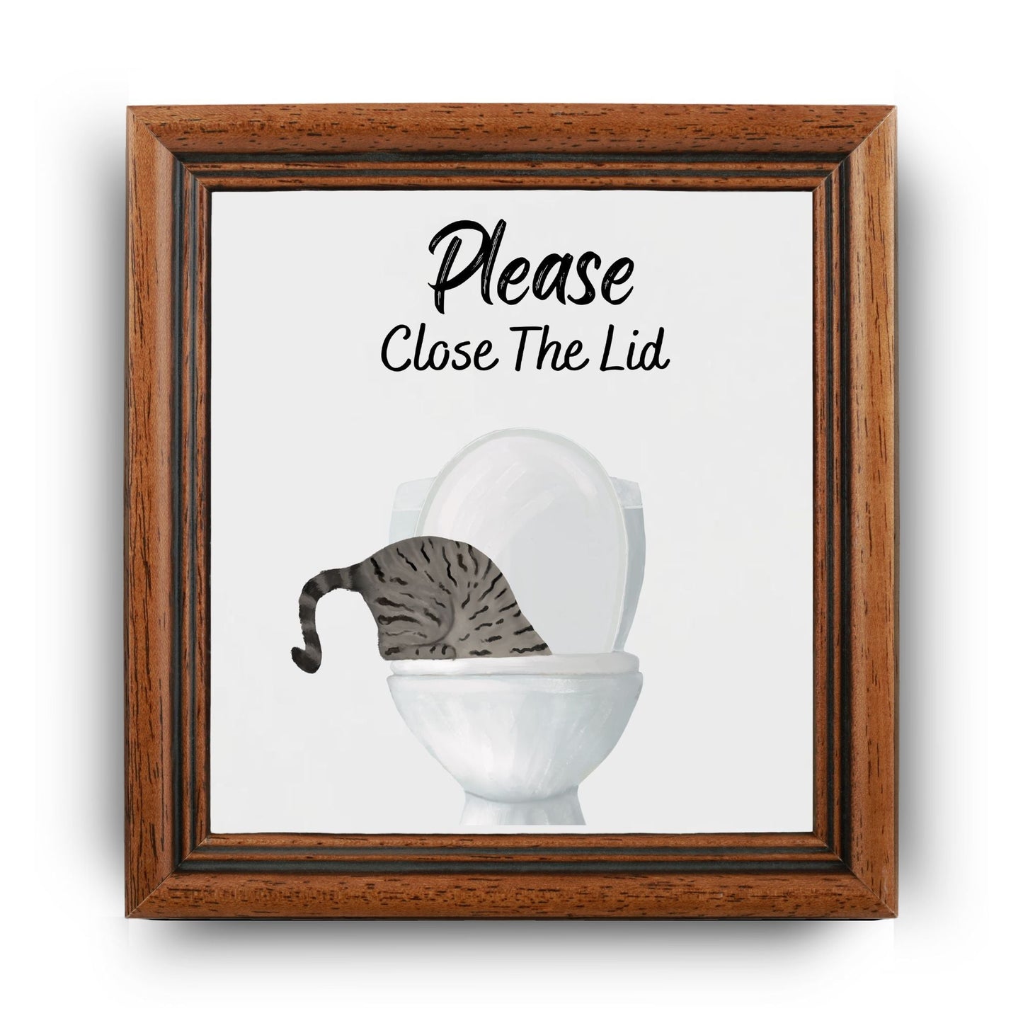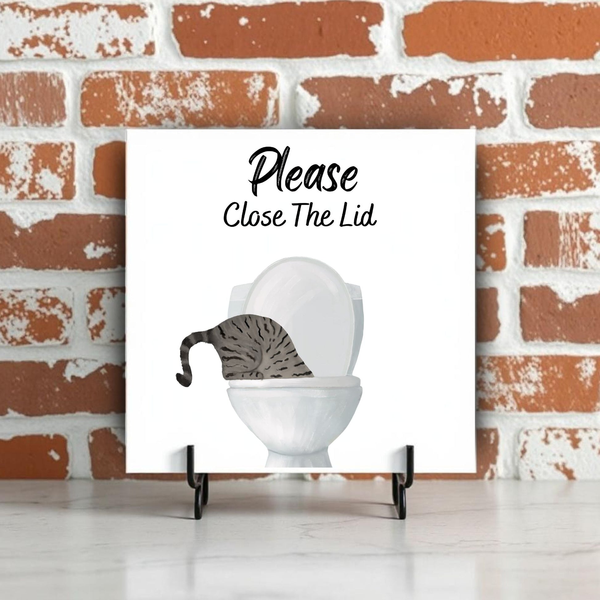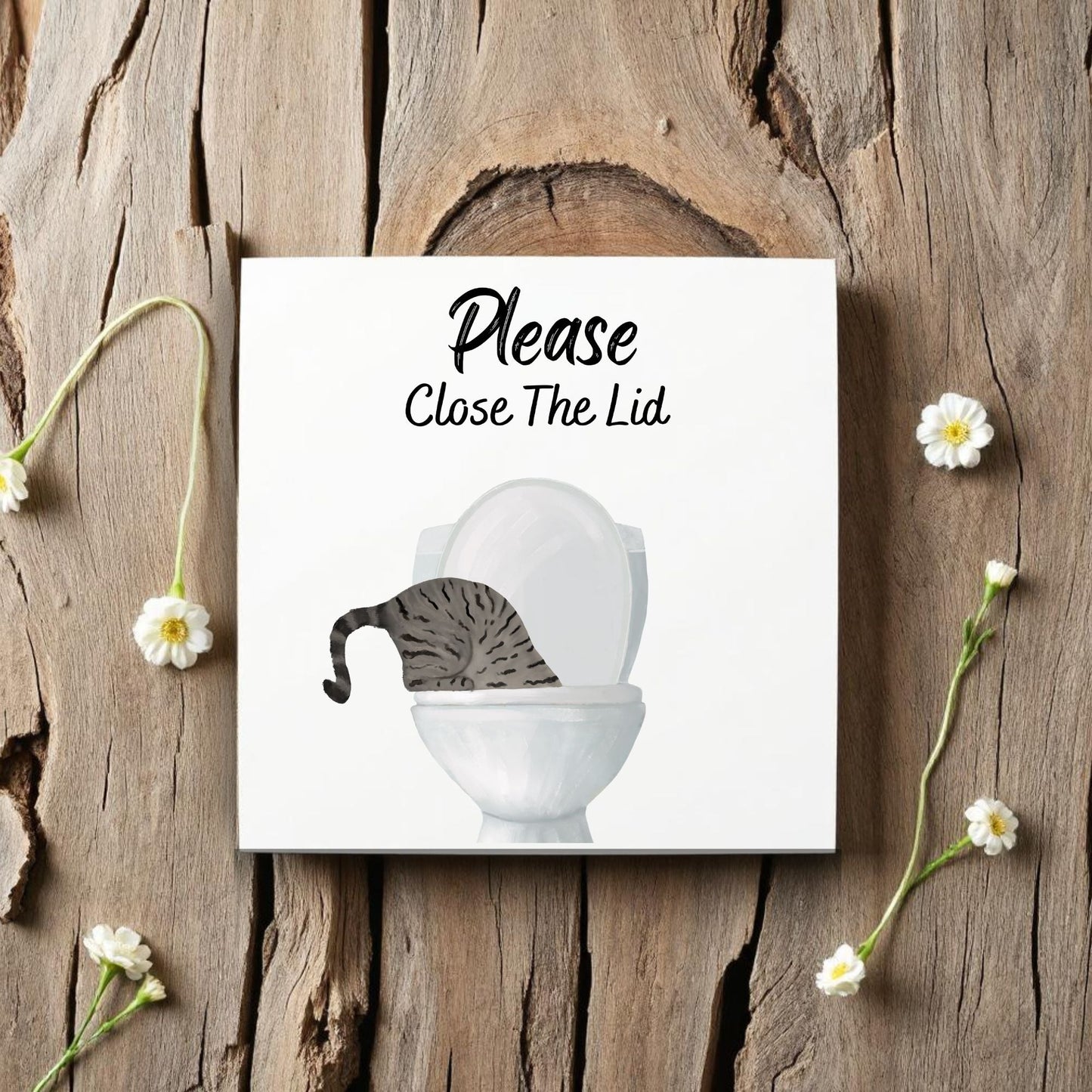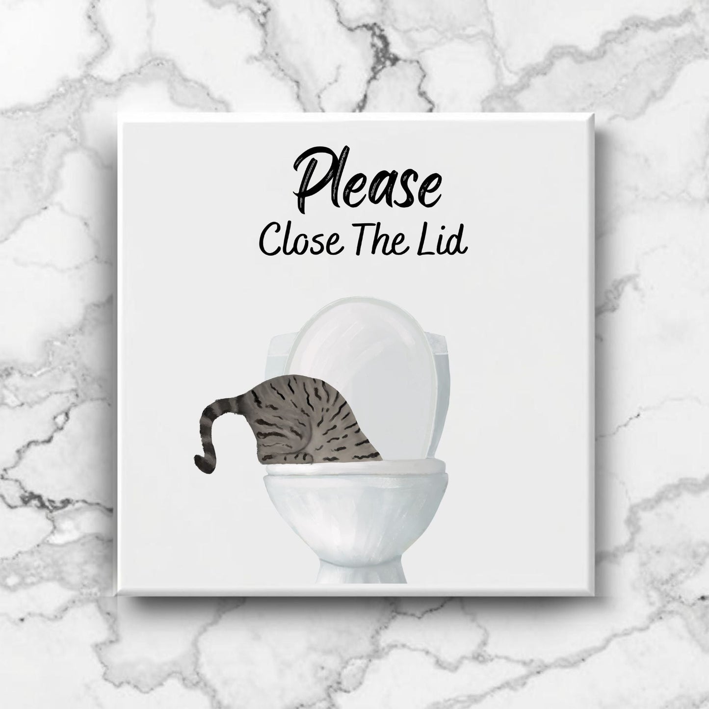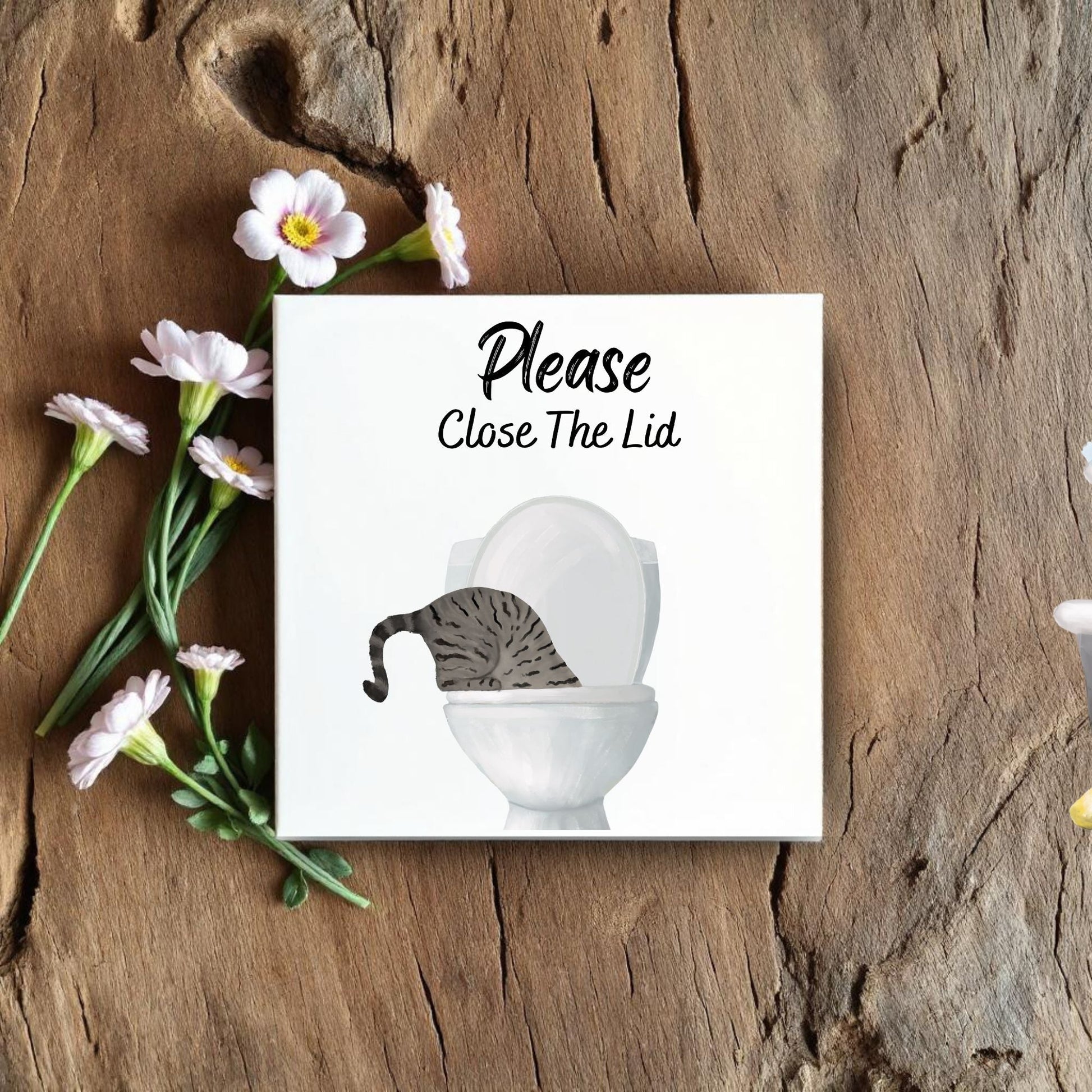 This charming ceramic tile showcases a playful gray cat diving into a toilet, designed by Harika Altungun. This artistic and humorous piece is a perfect addition to any bathroom decor. Whether as a unique gift for cat lovers or a fun decorative accent for your own home, it brings a delightful touch of personality.