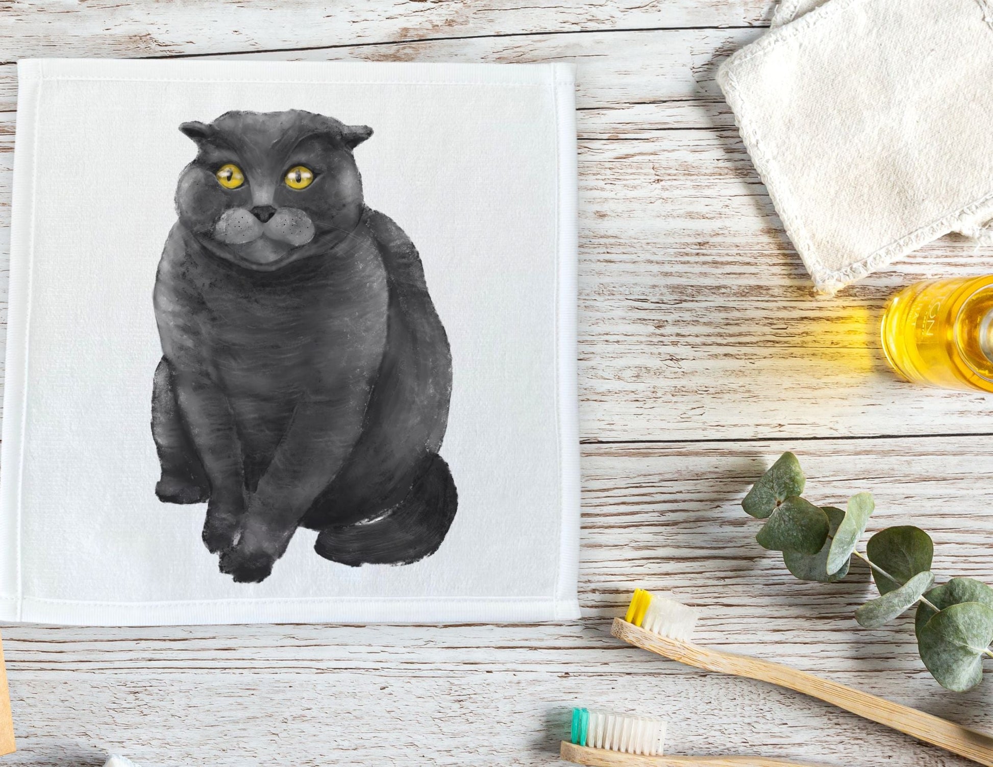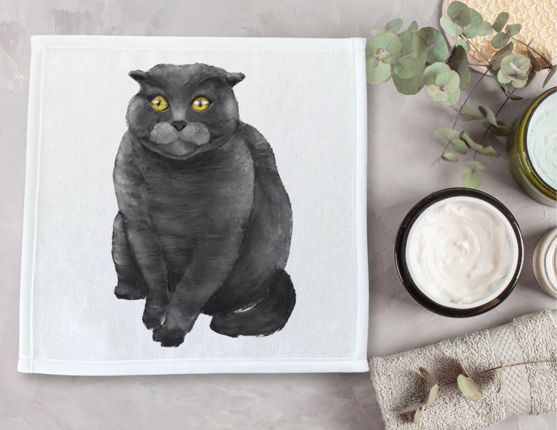 With a plush grey coat and golden eyes full of quiet judgment, this washcloth features a grey cat that exudes calm confidence. Illustrated by Harika Altungun, this piece captures that classic feline presence—soft, mysterious, and just a little bit bossy. Whether you’re a grey cat parent or just love a dignified kitty vibe, this washcloth makes the perfect cozy and classy accent.