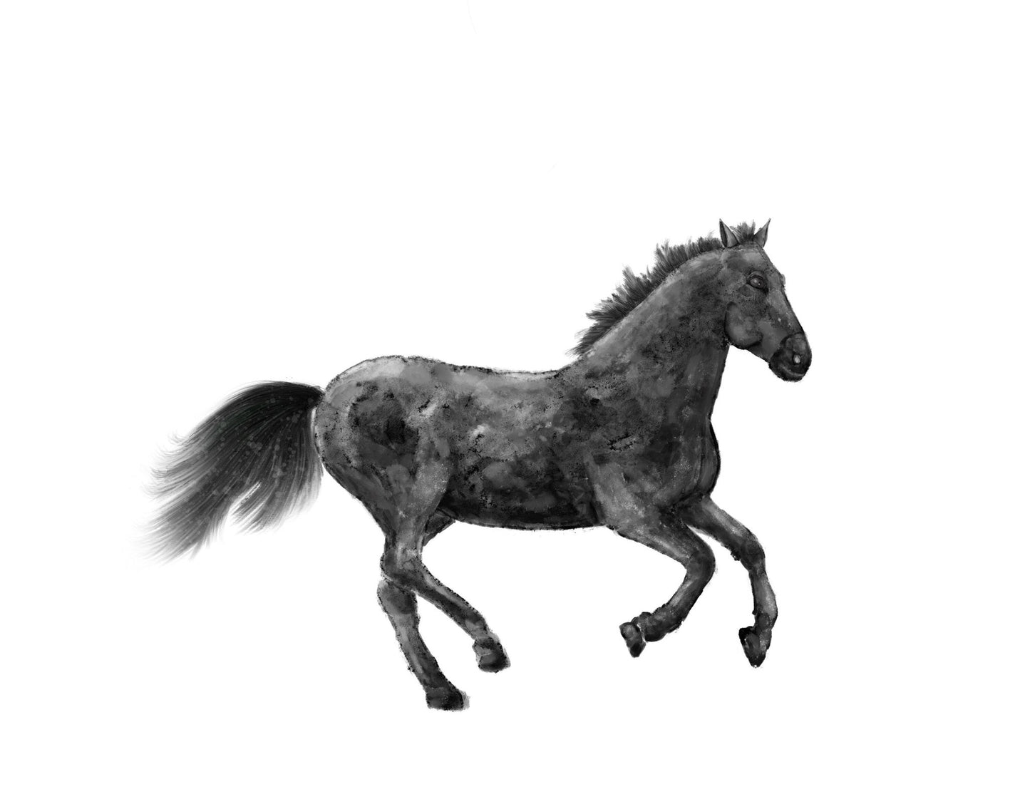 Running Black Horse ORIGINAL ART PRINT. It’s printed after my original artwork.