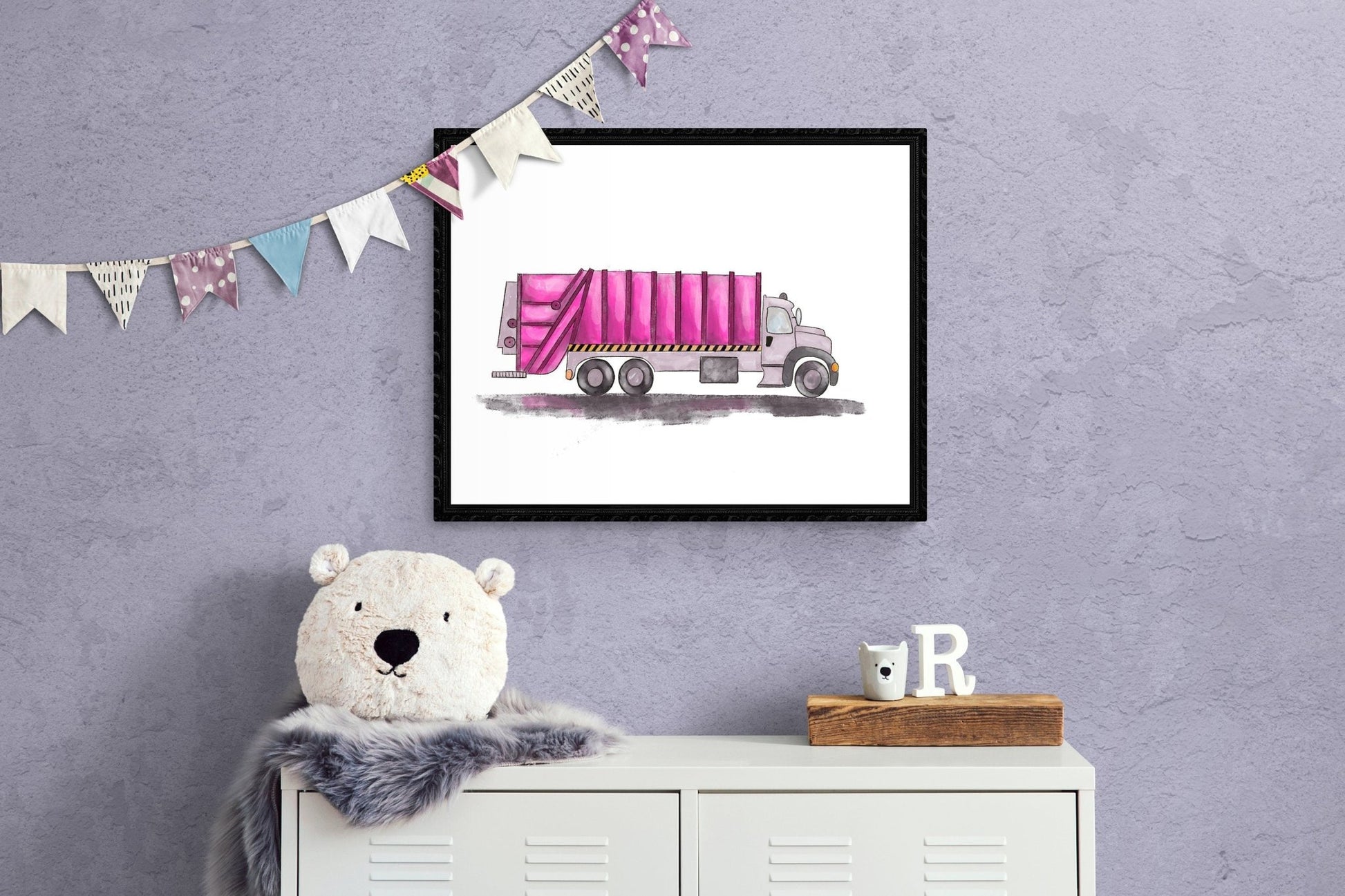 Original Pink Garbage Truck Print