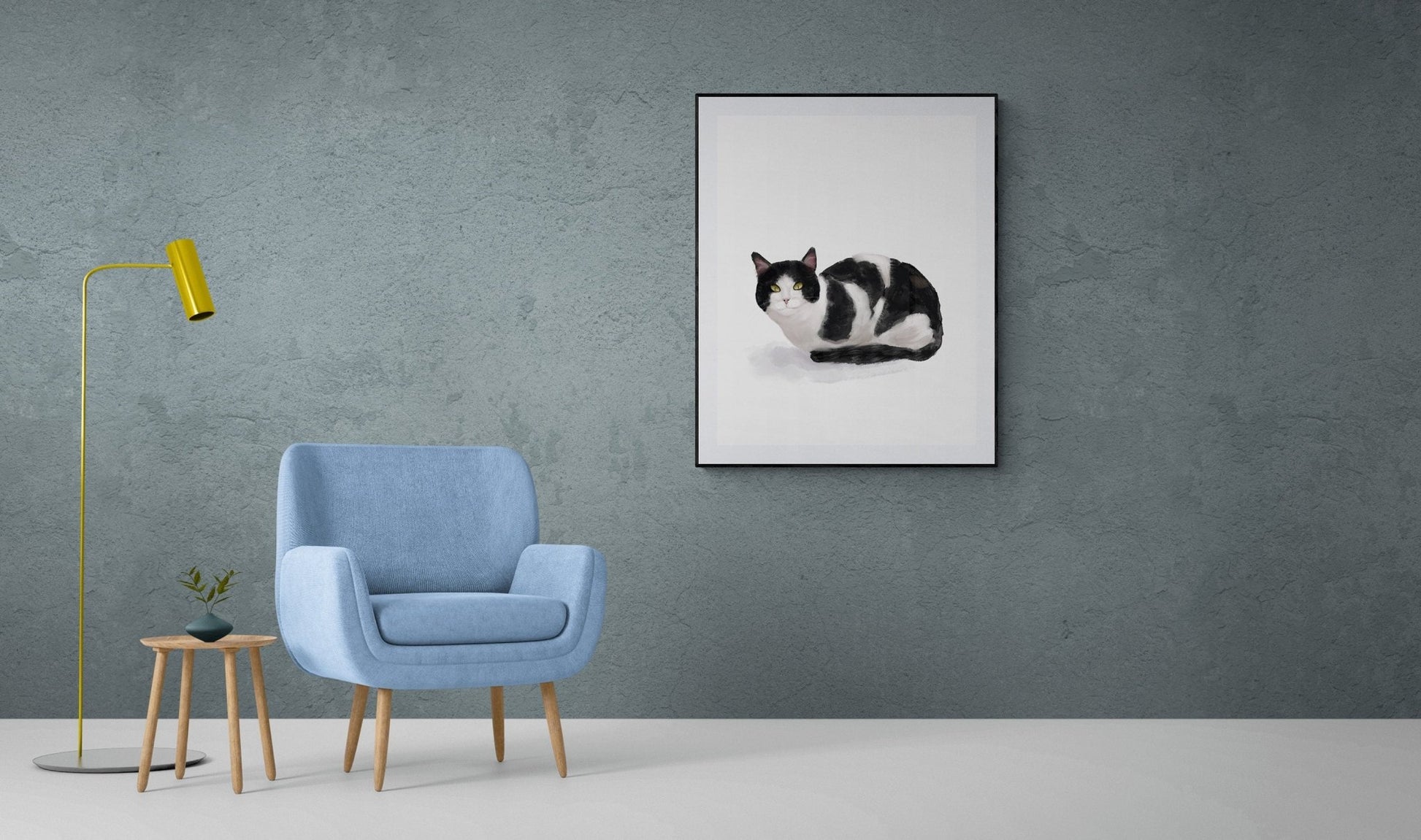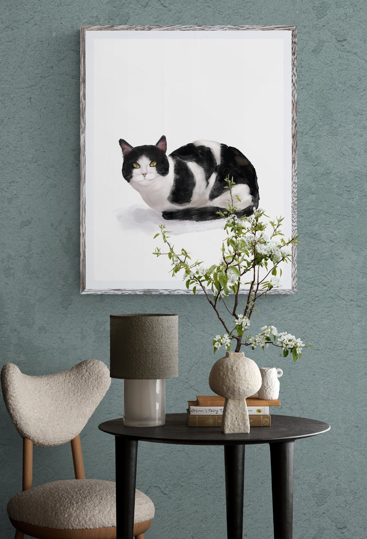 Tuxedo Black and White Cat ART PRINT. It’s printed after my original artwork.