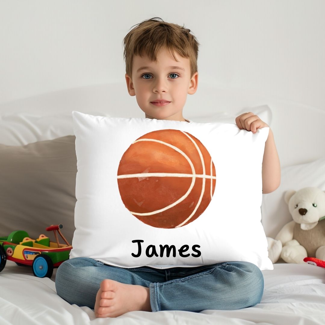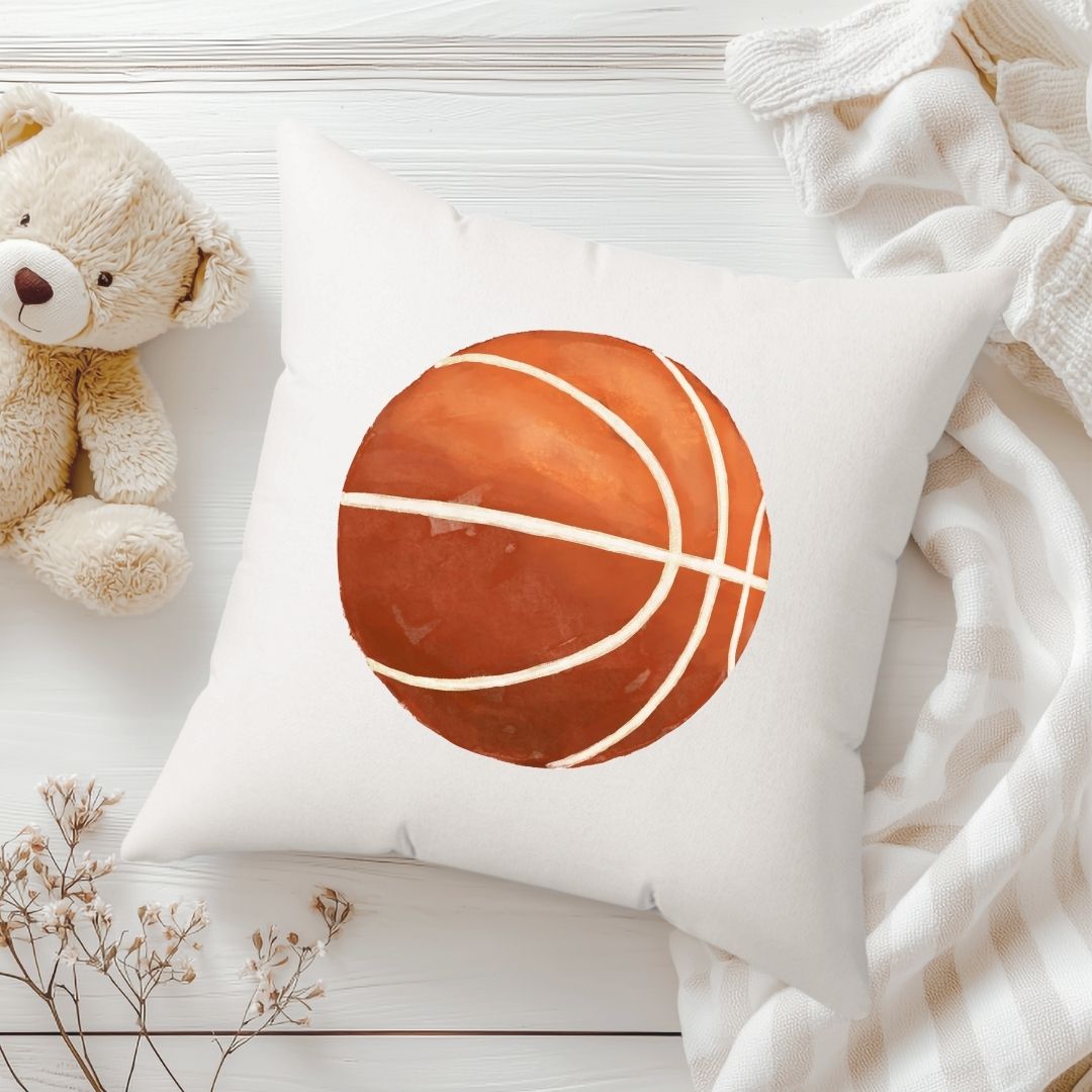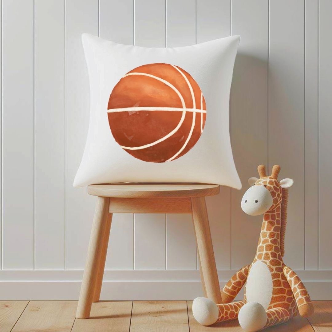 Dunk into style with this sporty pillow featuring a classic basketball illustration. Perfect for young athletes and basketball fans, this design adds a fun and energetic vibe to their room. Personalize it with your child’s name to create a unique keepsake or a thoughtful gift for birthdays, baby showers, or any special occasion.