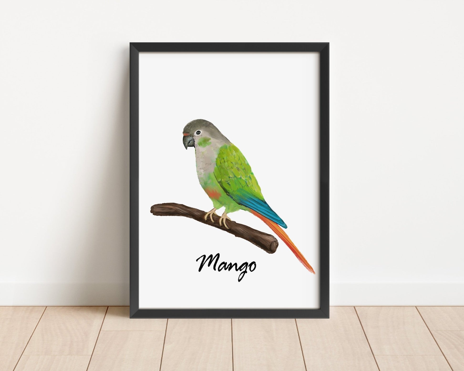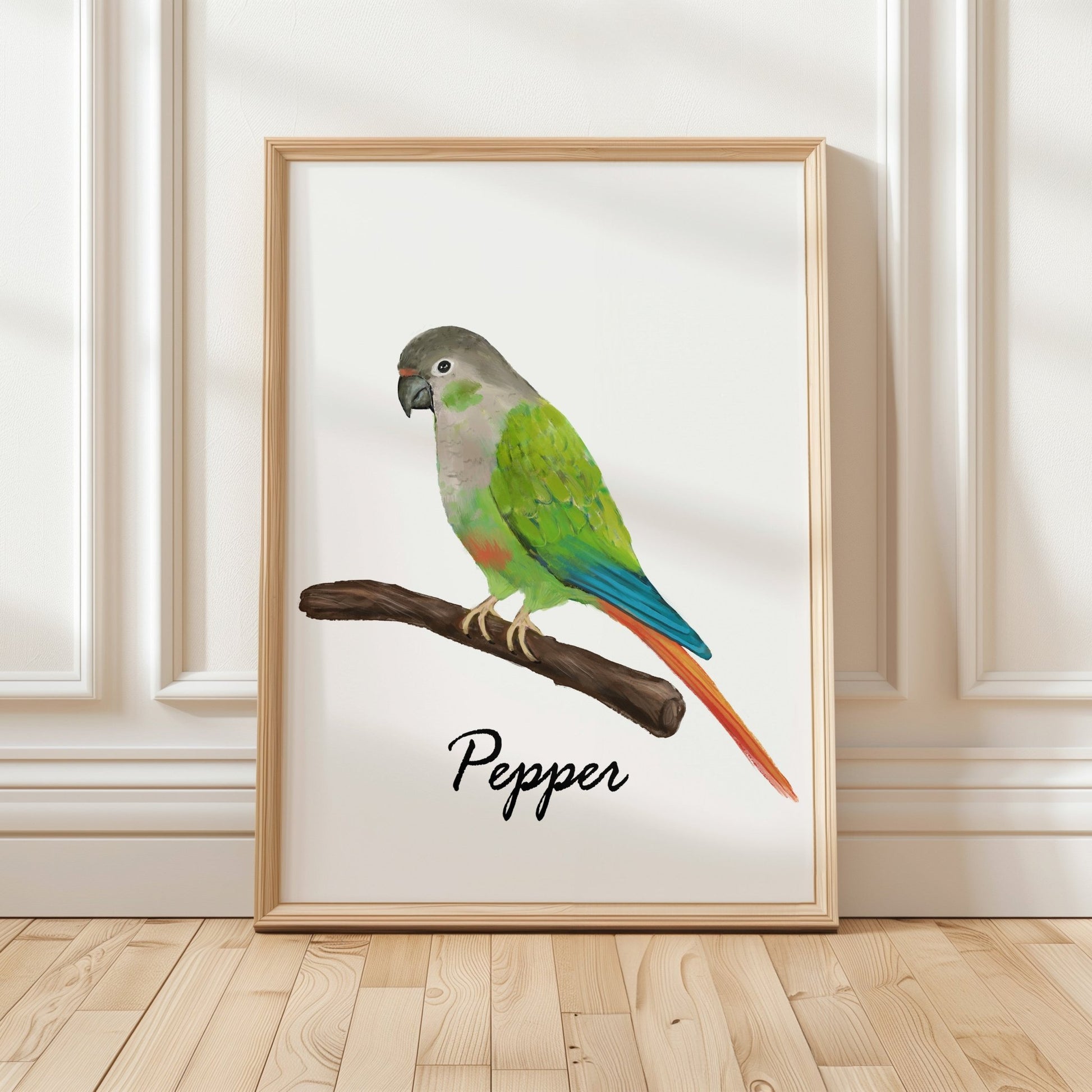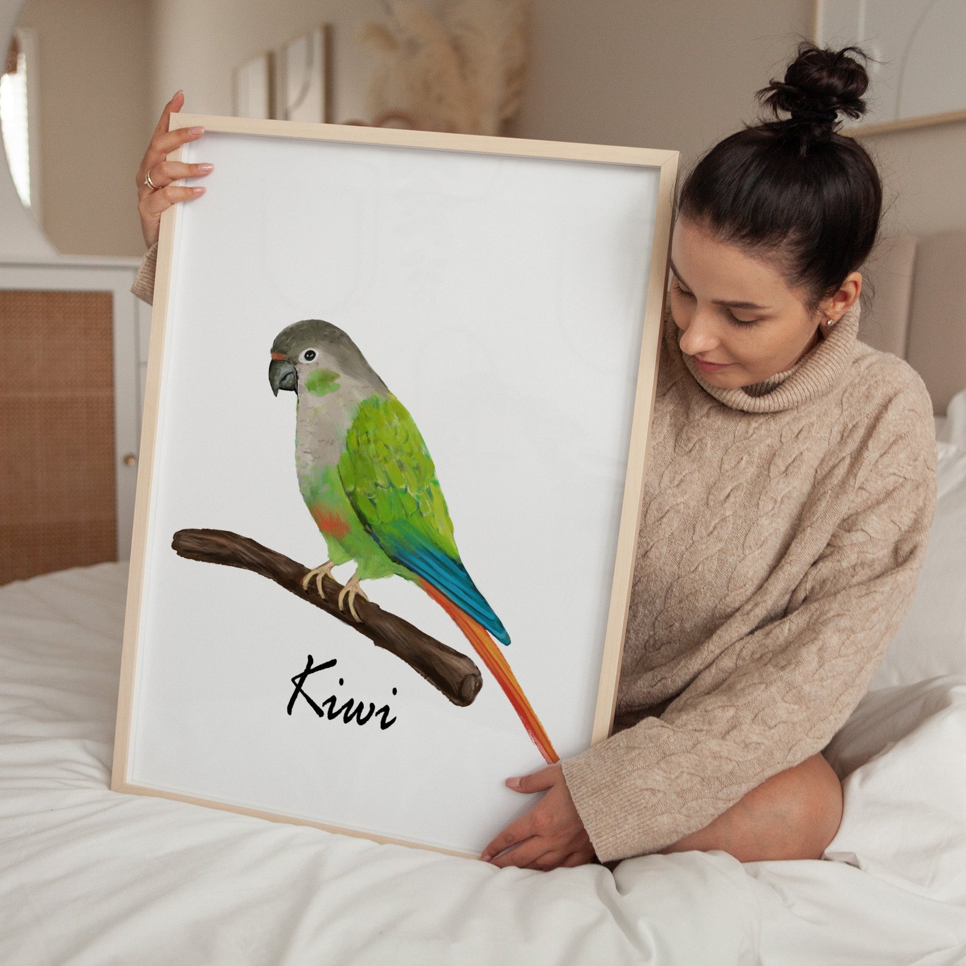 Personalized Green Cheek Conure Wall Art Print – Colorful Parrot Bird Illustration for Bird Lovers
