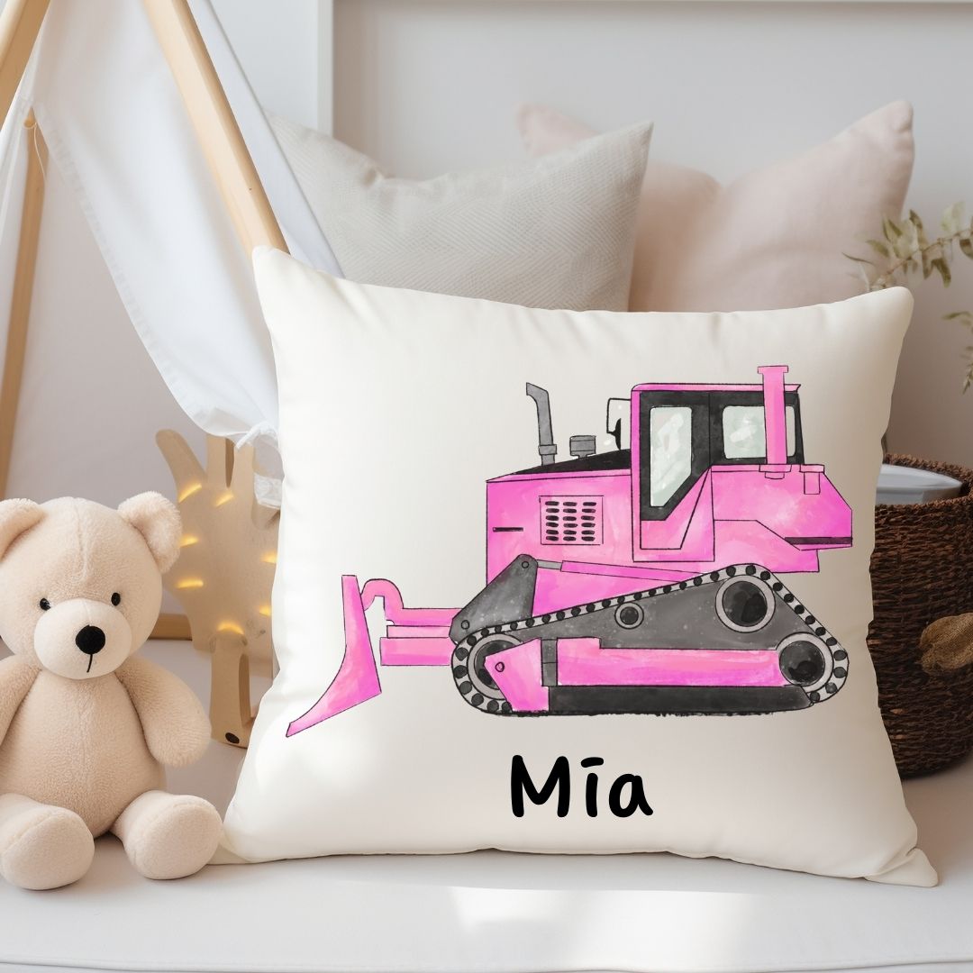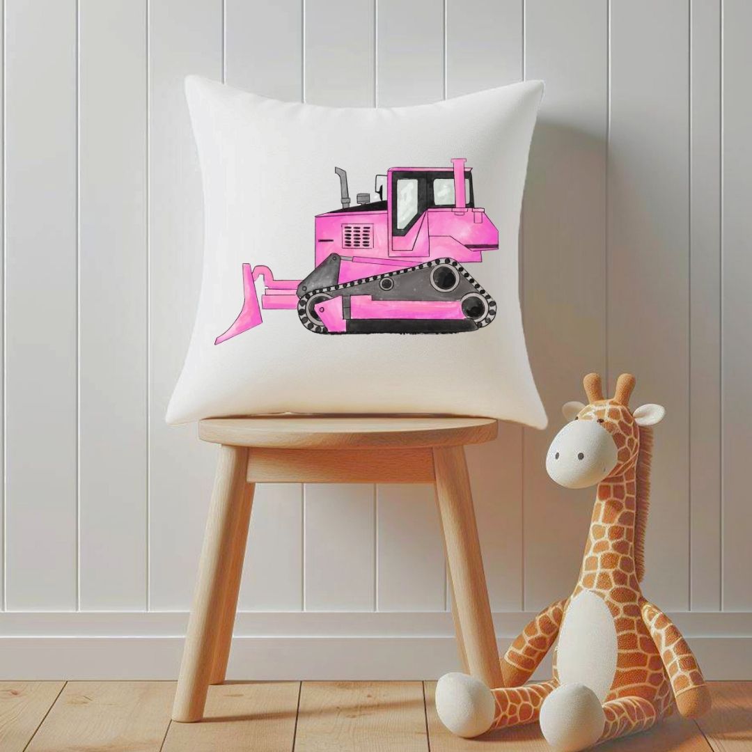 Personalized Pink Bulldozer Kids Pillow