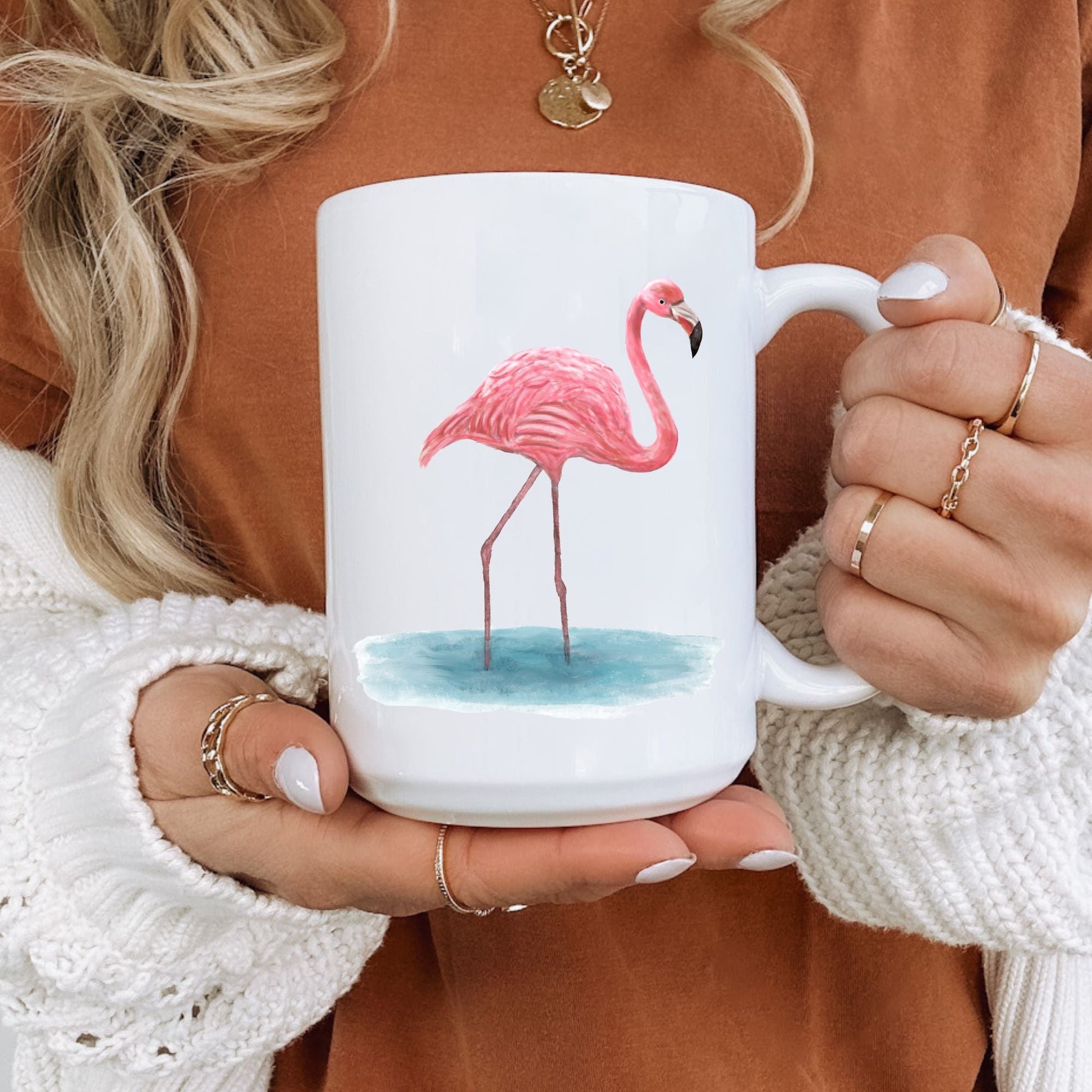 Add a tropical vibe to your coffee routine with this delightful ceramic coffee mug featuring a pink flamingo wading gracefully in water. Perfect for bird lovers and those who enjoy the beauty of tropical wildlife, this mug is a stylish and colorful addition to any drinkware collection.