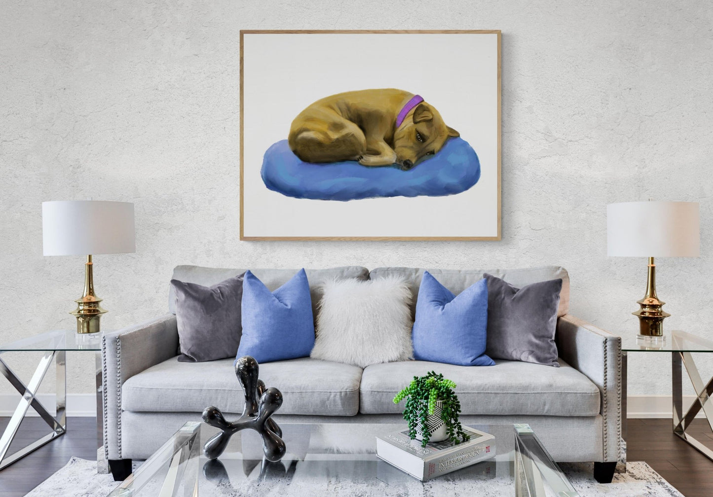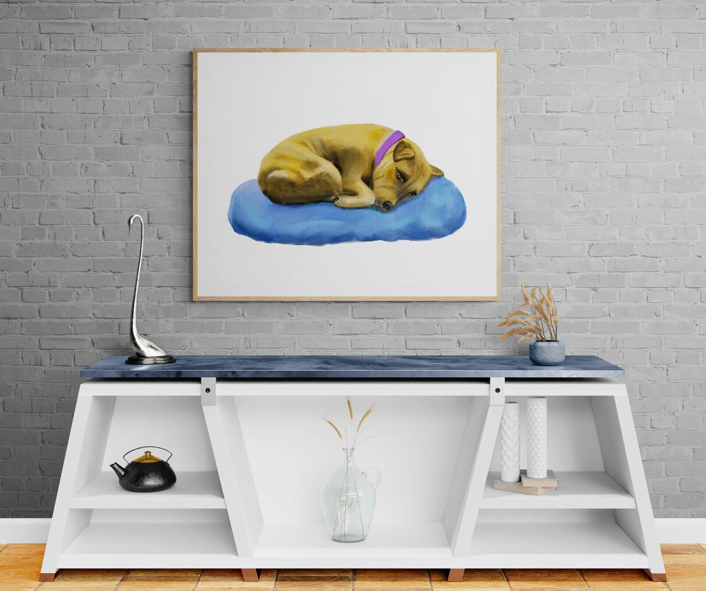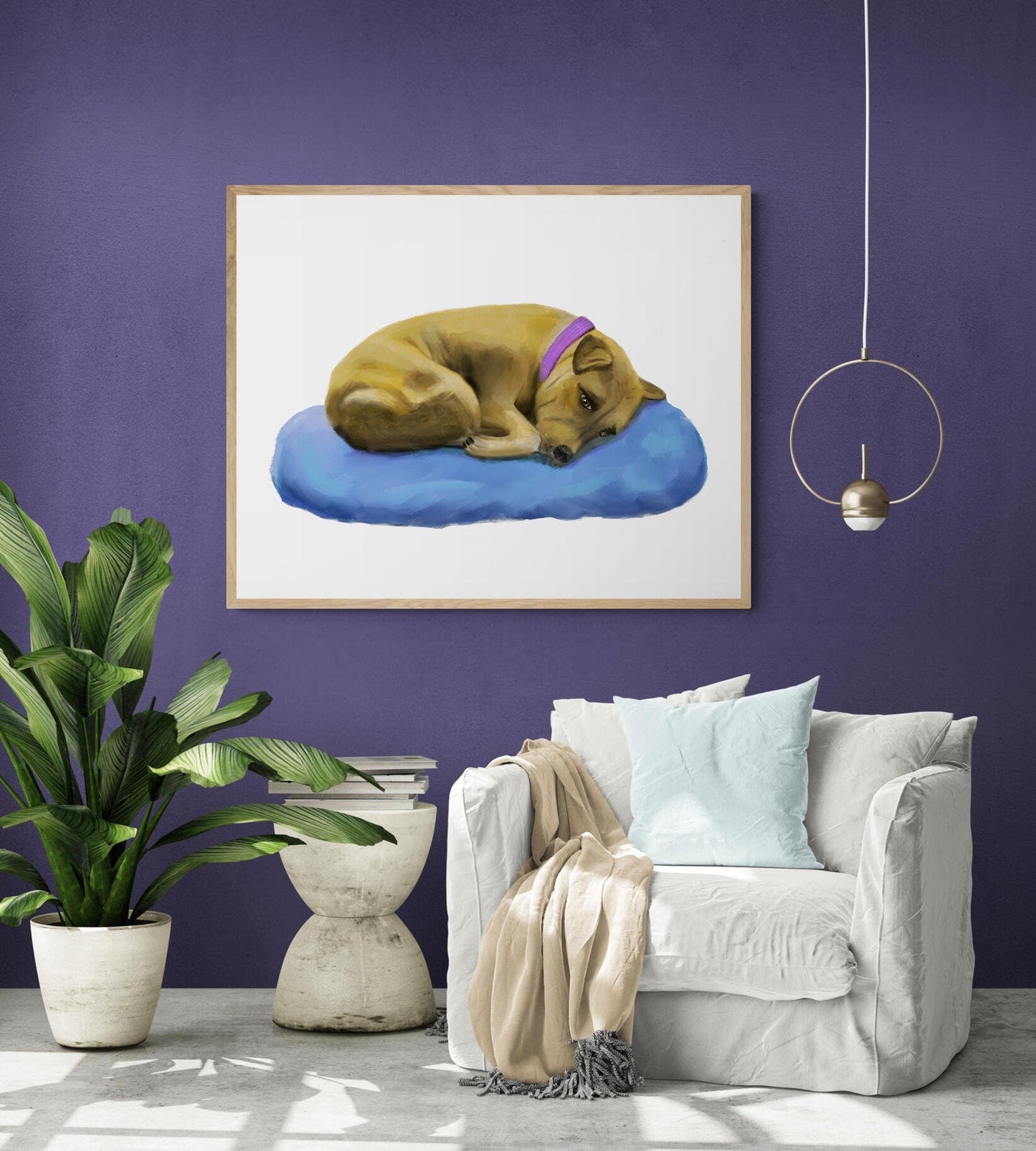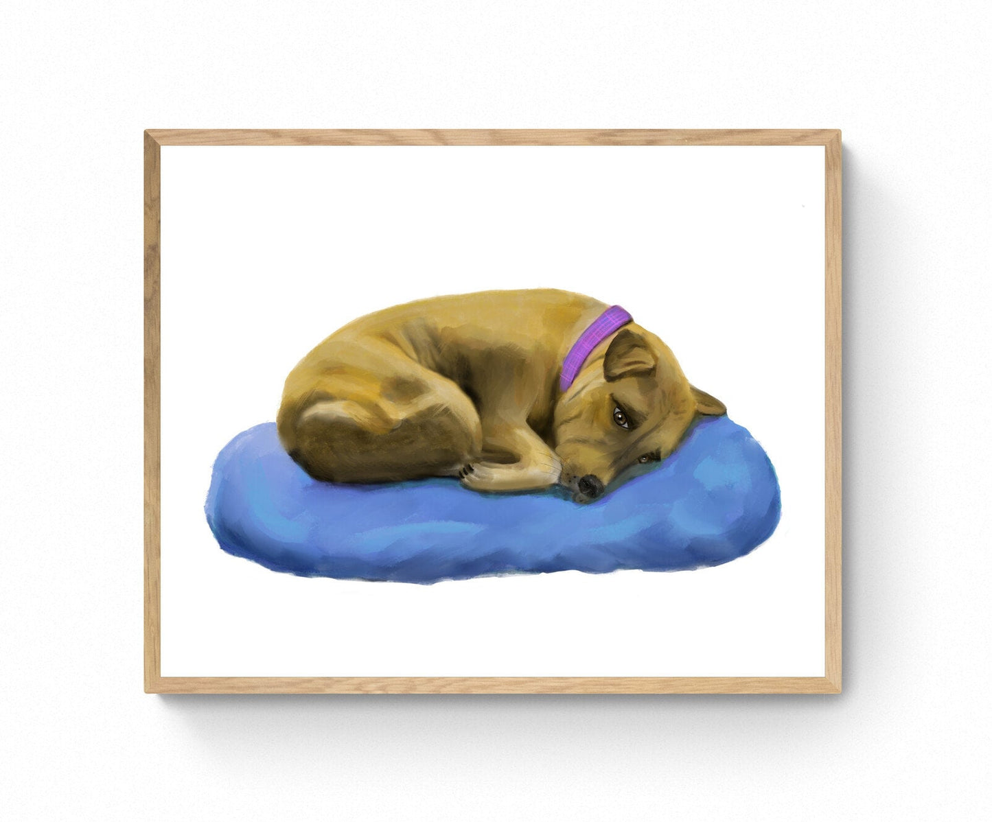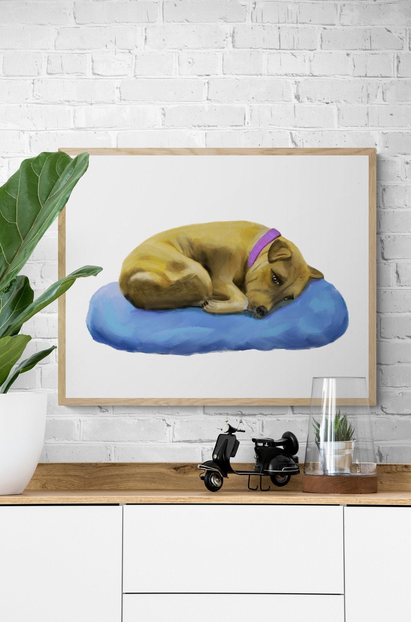 Pitbull Print, Pit Bull Painting, Dog Portrait, Doggy Memorial, Sleeping Puppy Wall Art, Bedroom Wall Print, Home Decor, Kids Wall Art