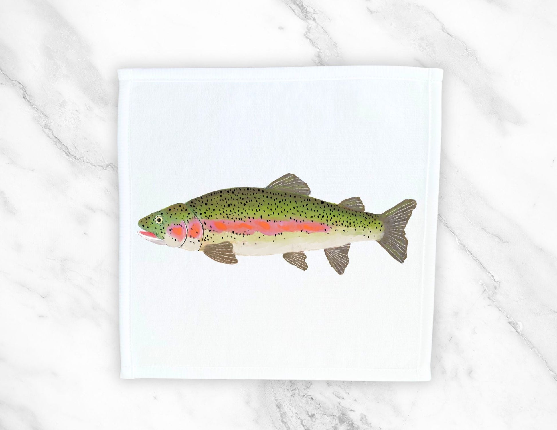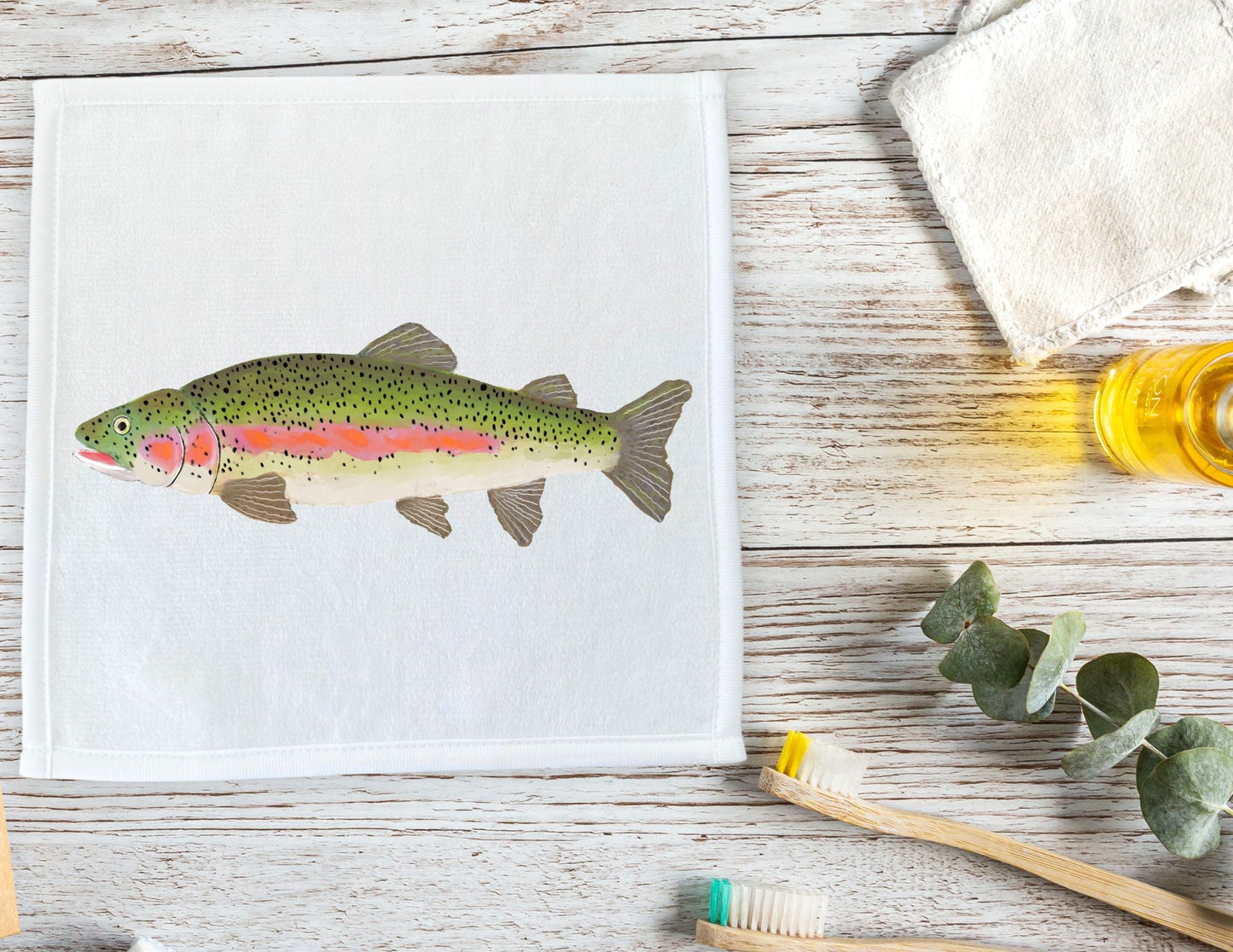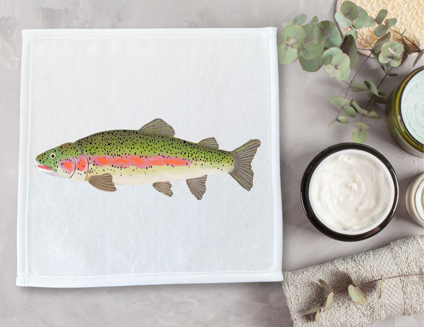 Add a touch of aquatic elegance to your home with this stunning washcloth featuring a beautifully detailed rainbow trout. Illustrated by Harika Altungun, this design captures the vibrant hues and unique patterns of this iconic freshwater fish. Perfect for fishing enthusiasts, nature lovers, or anyone seeking a splash of color in their decor.