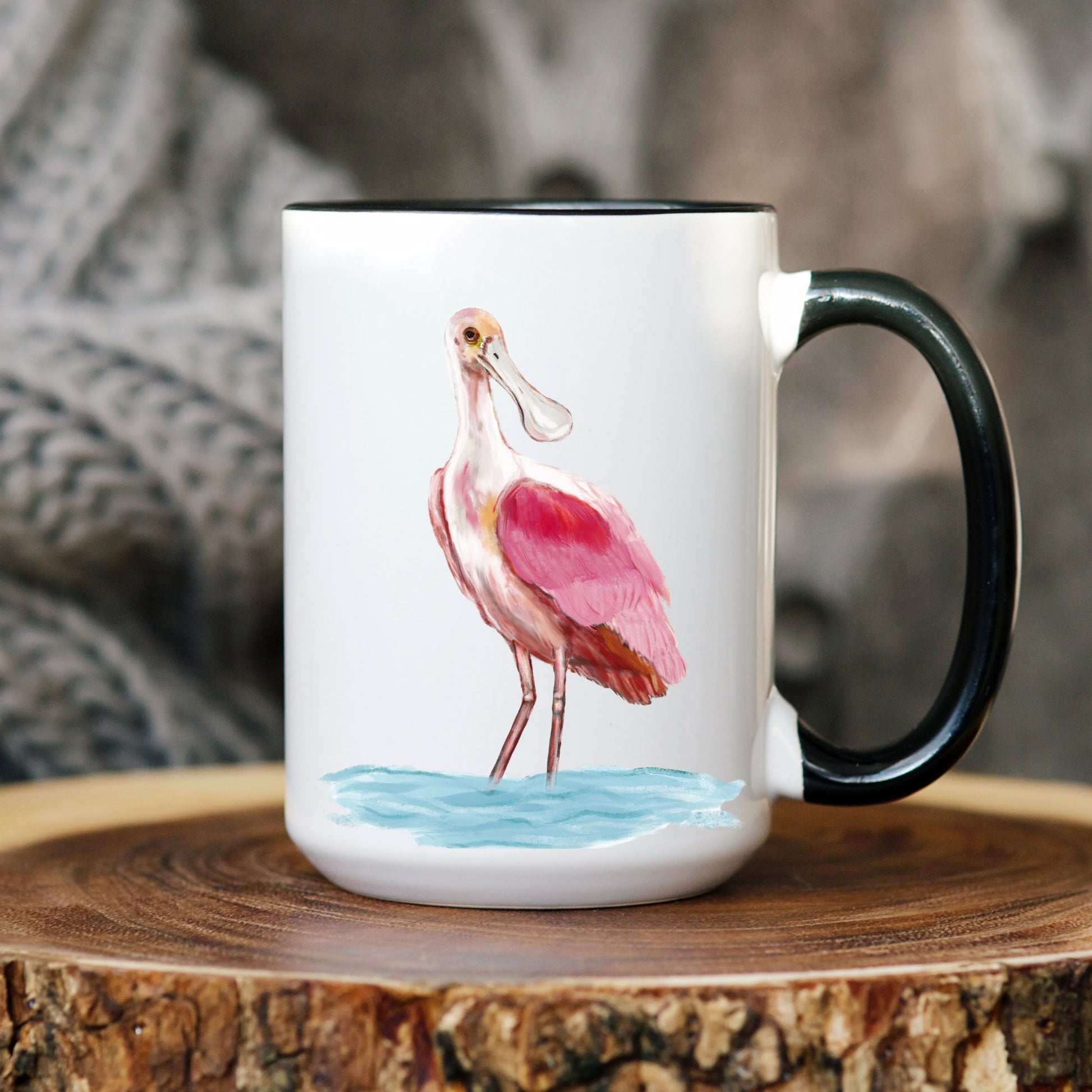 Add a touch of elegance to your coffee routine with this stunning ceramic coffee mug featuring a vibrant roseate spoonbill wading in tranquil waters. Perfect for bird lovers and nature enthusiasts, this mug showcases the unique beauty of this striking bird.