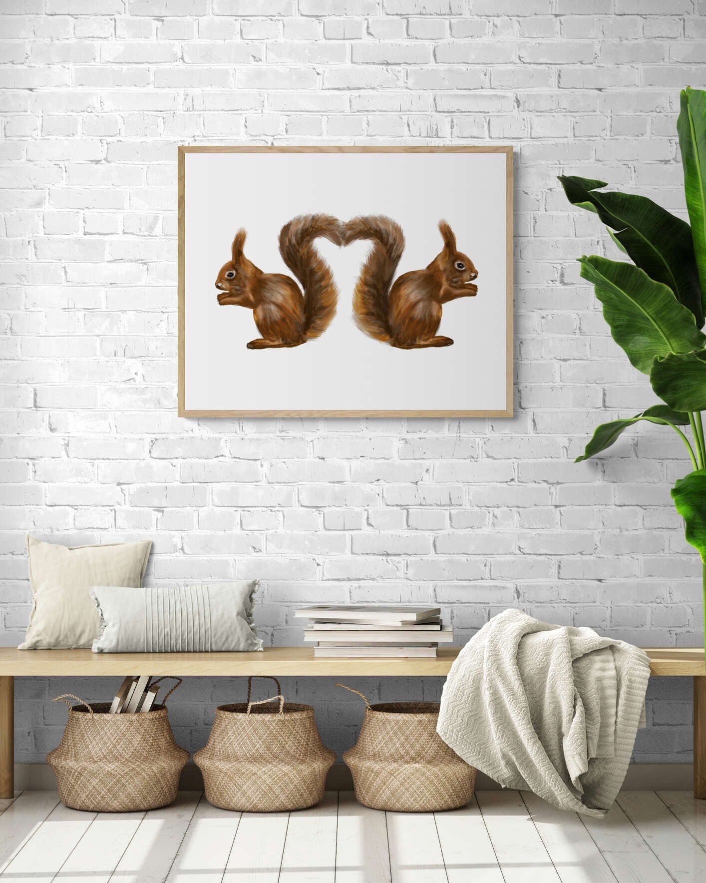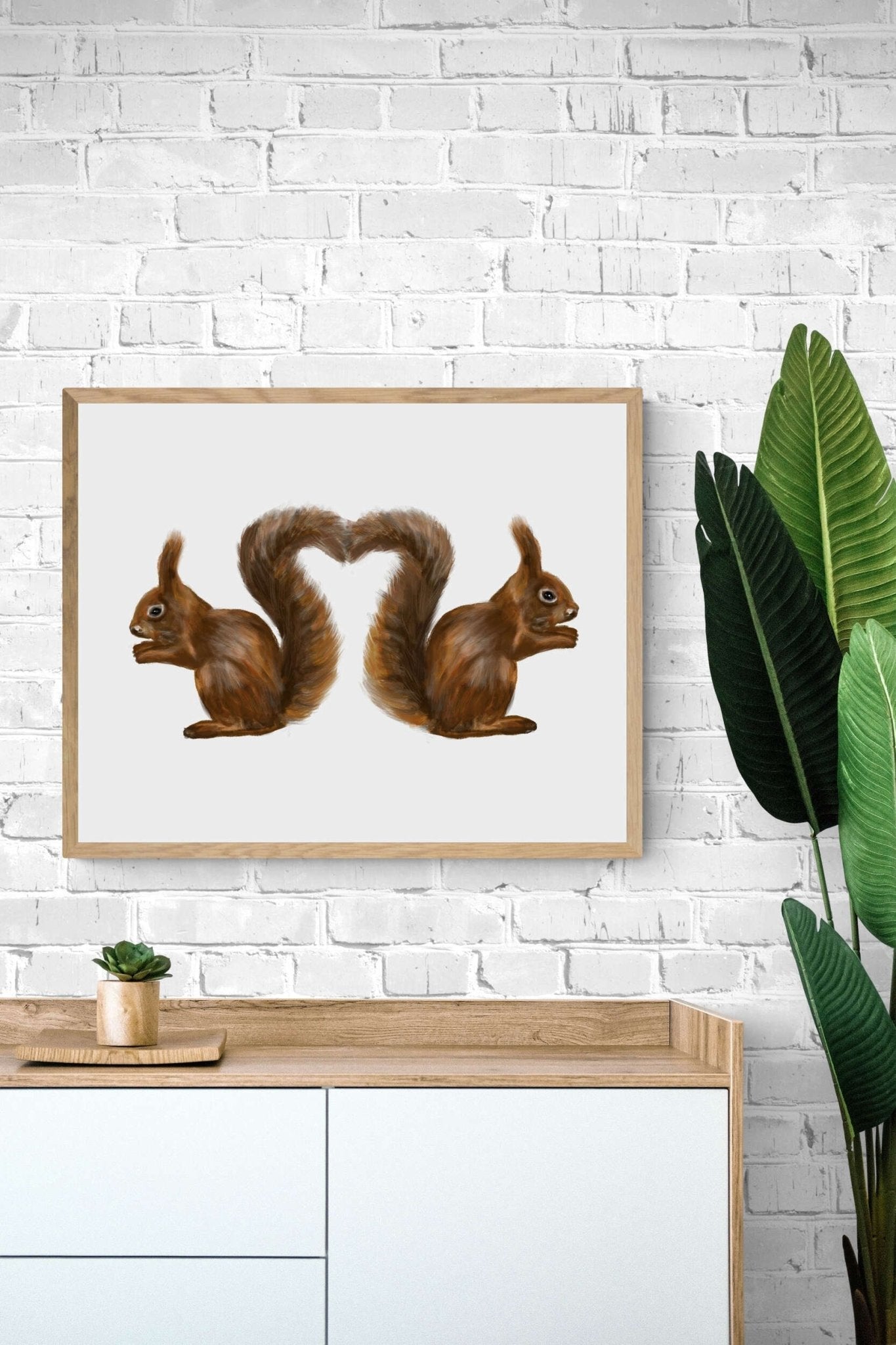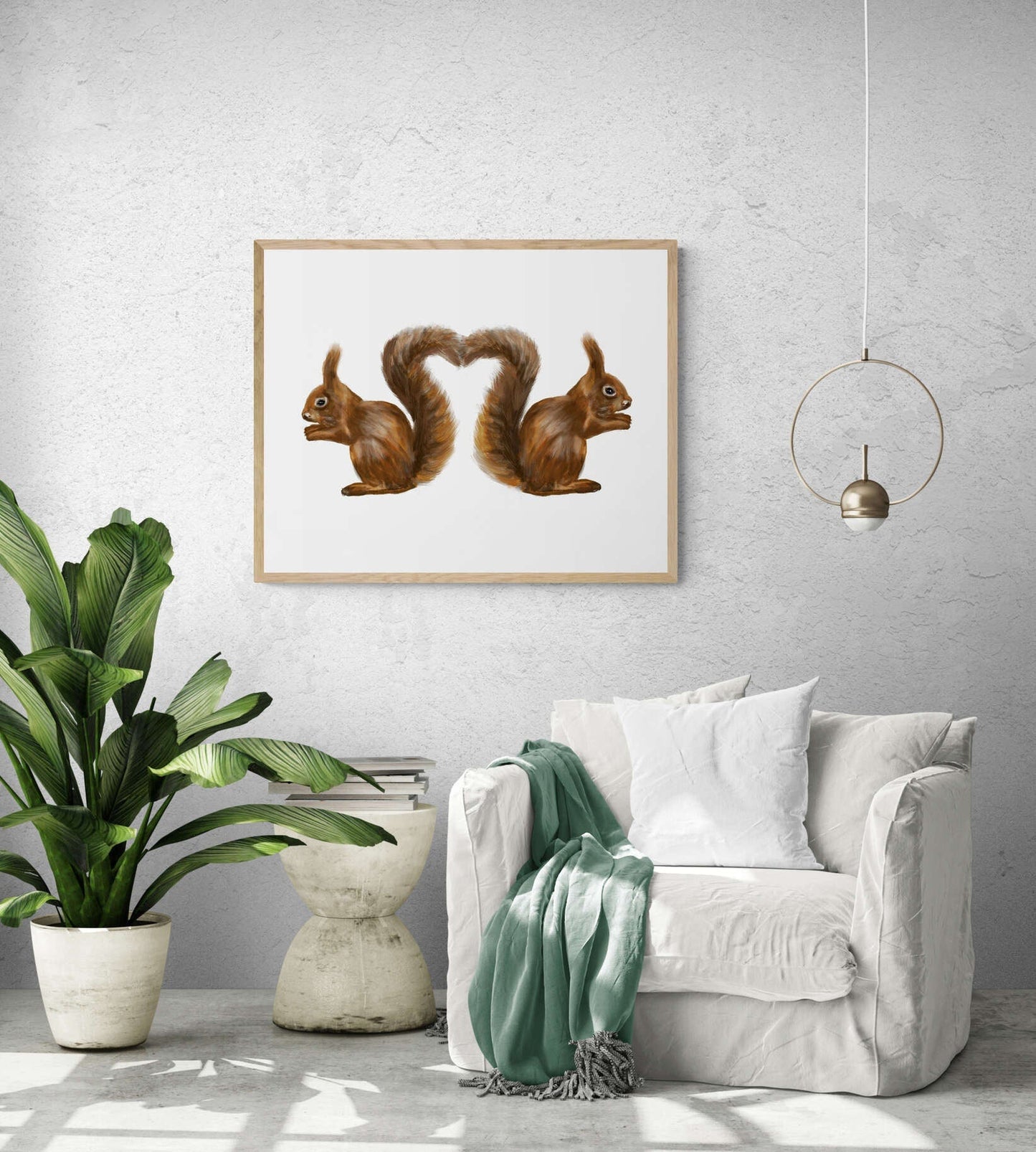 Squirrel Couple Print, Squirrel Portrait, Animal Art, Living Room Wall Art, Home Decor, Wildlife Illustration, Animal Lover Gift