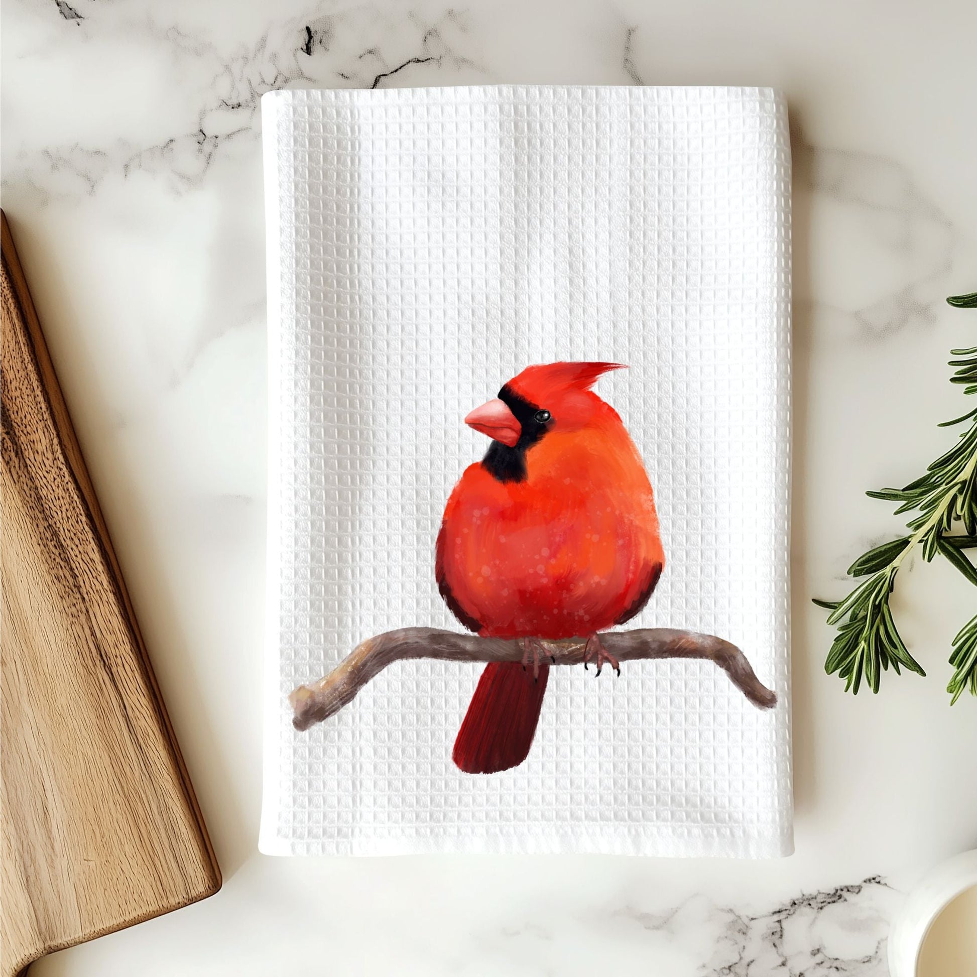 Bring a vibrant touch of nature to your kitchen with this unique waffle weave kitchen towel featuring a striking male cardinal perched on a branch. The design on this towel is created from Harika Altungun's original drawings, making it truly one of a kind. Perfect for bird enthusiasts, cardinal admirers, or anyone who appreciates artistic and functional home décor.