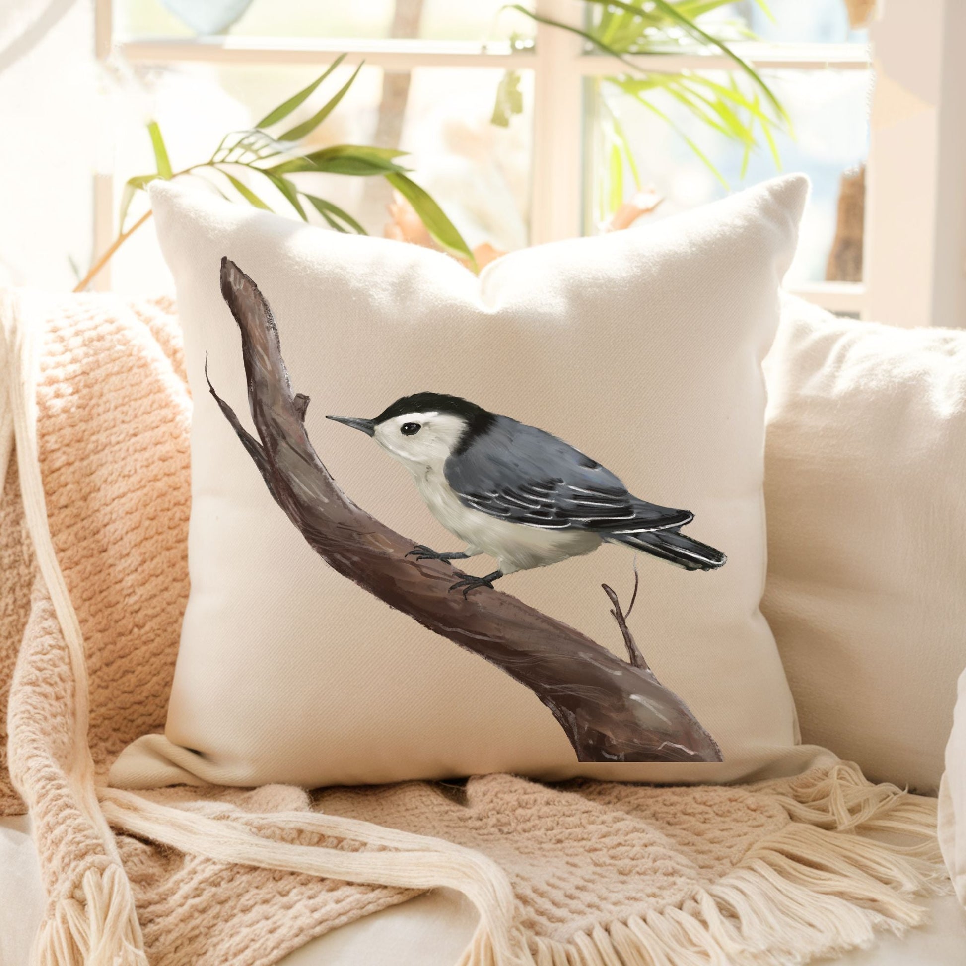 This White Breasted Nuthatch Pillow brings a nature inspired charm to your space. Featuring an original illustration by Harika Altungun, this unique design showcases the striking beauty of a nuthatch perched on a branch. A perfect addition for bird lovers and nature enthusiasts.